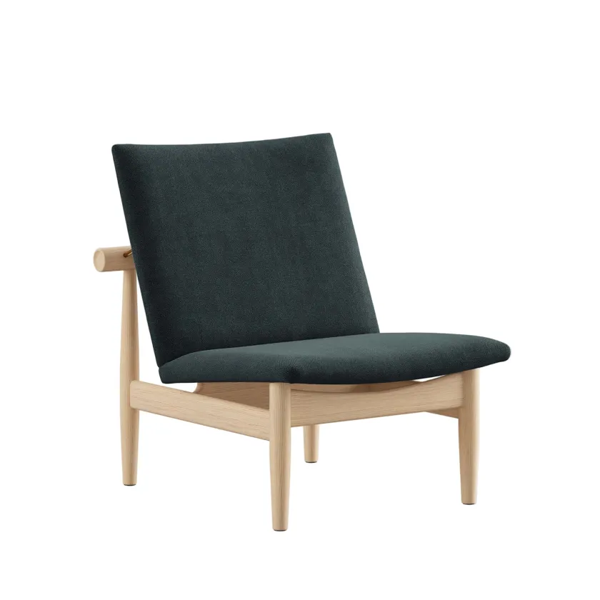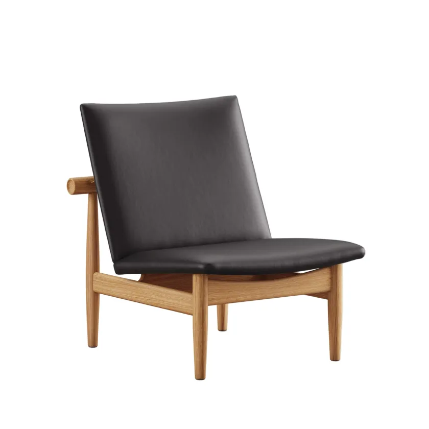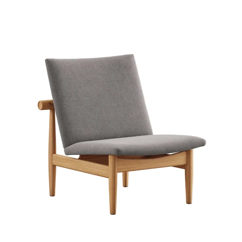 Japanstolen af Finn Juhl forener japansk inspireret ro med dansk snedkerkvalitet. Den markante tværliggende rygsprosse svæver visuelt fri af stellet via små afstandsstykker i messing, hvilket skaber et let og elegant udtryk. I olieret egetræ står stolens organiske detaljer skarpt, mens det brede, lave sæde inviterer til afslappet loungekomfort i stuen, læsehjørnet eller receptionen. En ikonisk klassiker fra 1957, relanceret af House of Finn Juhl, som stadig fremstilles med stor omhu og mulighed for håndpolstring i både stof og læder.