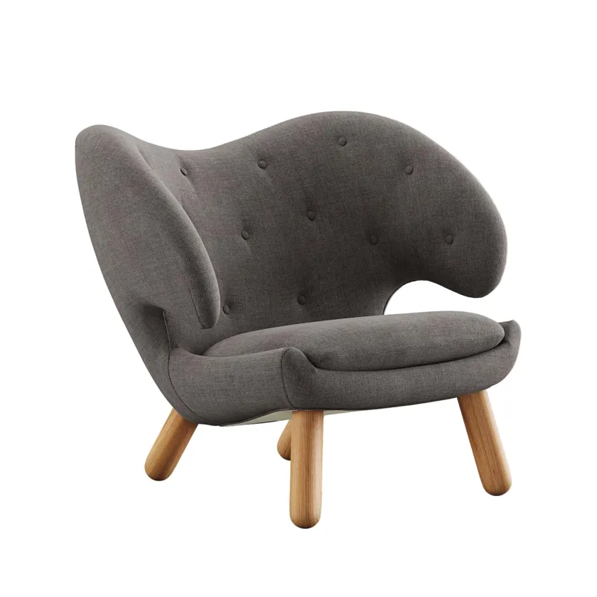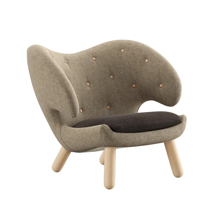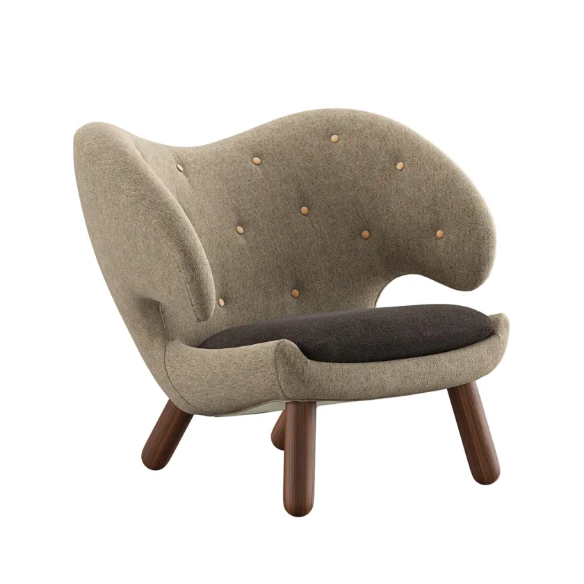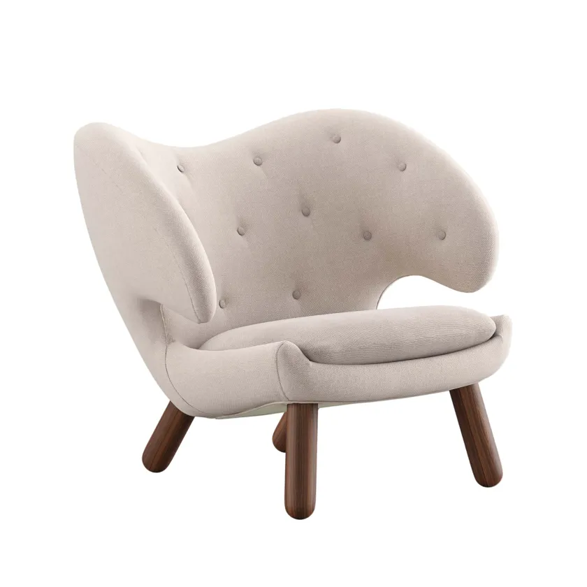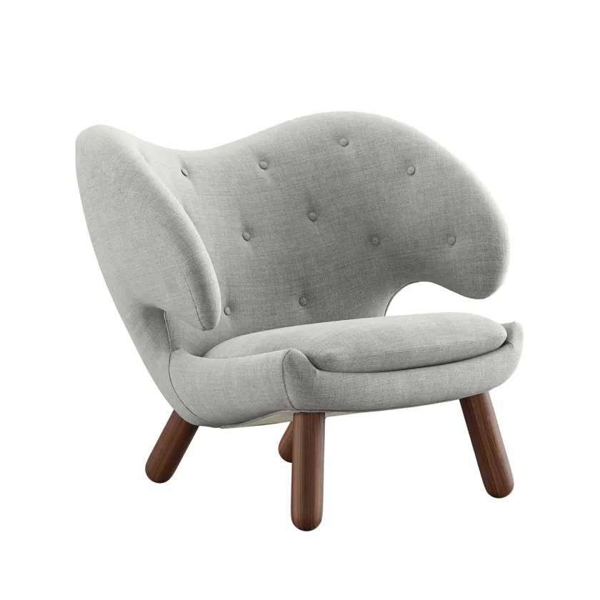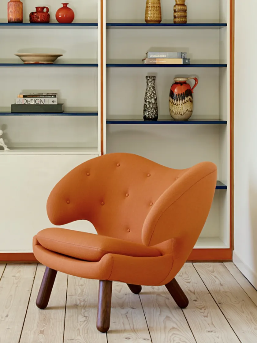 Pelikan stolen af Finn Juhl er en skulpturel loungefavorit, der indbyder til at synke ned og blive siddende. De bløde, organiske kurver omfavner kroppen og giver flere naturlige siddestillinger, mens den løse hynde understøtter komforten. Stolen polstres i hånden i Danmark i tekstil, læder eller fåreskind, og kombinationen med ben i valnød giver et varmt og eksklusivt udtryk, der passer elegant ind i både moderne og klassiske hjem. Designet blev præsenteret i 1940 og er siden blevet et ikon for dansk møbelkunst med sin legende form og fine håndværk. Vælg den i din foretrukne polstring og oplev hvordan dens generøse proportioner og lave sædehøjde skaber en afslappet loungezone i stuen, soveværelset eller i entréens læsehjørne.