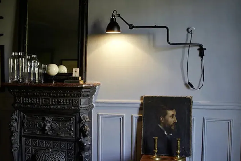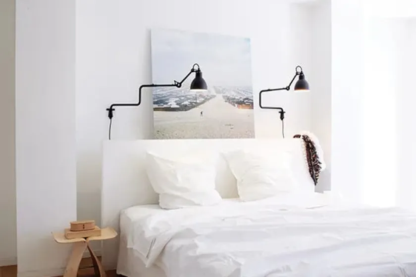 Nr. 303 væglampe fra Lampe Gras. Perfekt som sengelampe, over skrivebordet, eller placeret over en lænestol. Lampen har afbryder på ledningen.