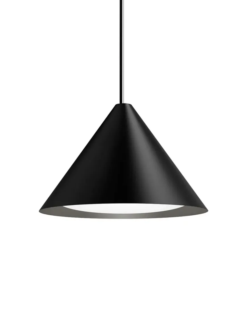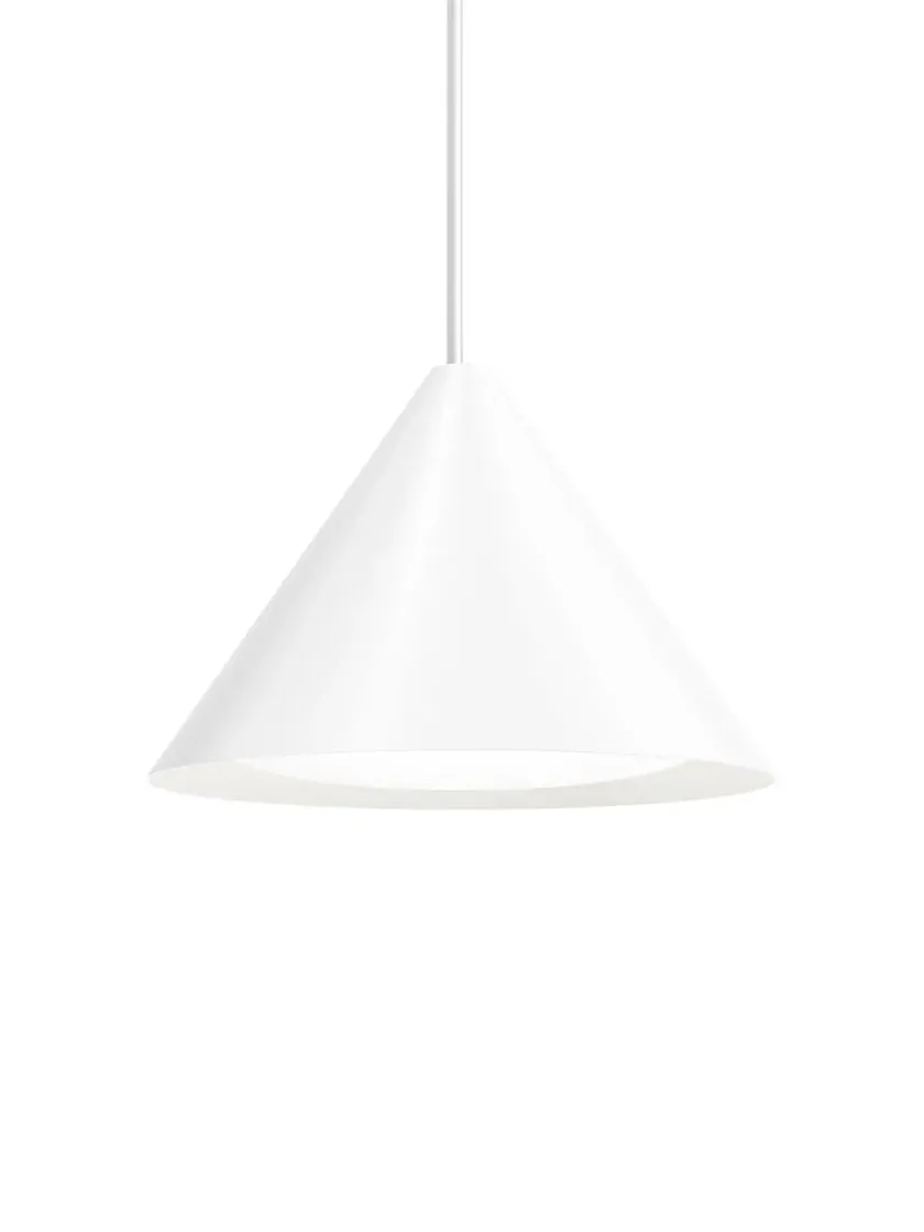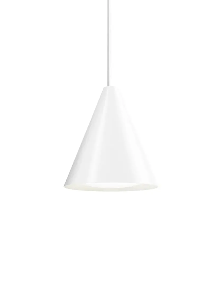 De fine pendler laves i sort eller hvid i fire forskellige størrelser, og er lavet med integreret LED-enhed.