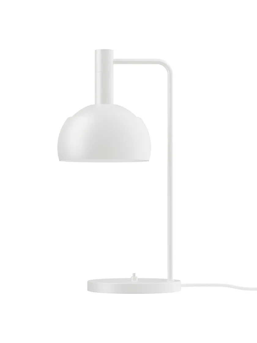 Bordlampen leveres med en aftagelig diffuser, som sikrer et blændfrit og behageligt lys – ideelt som stemningsbelysning i stuen, på skrivebordet eller ved sengen. Den matte finish understreger lampens arkitektoniske karakter og fås i tre farvevarianter: original grå, sort og hvid.