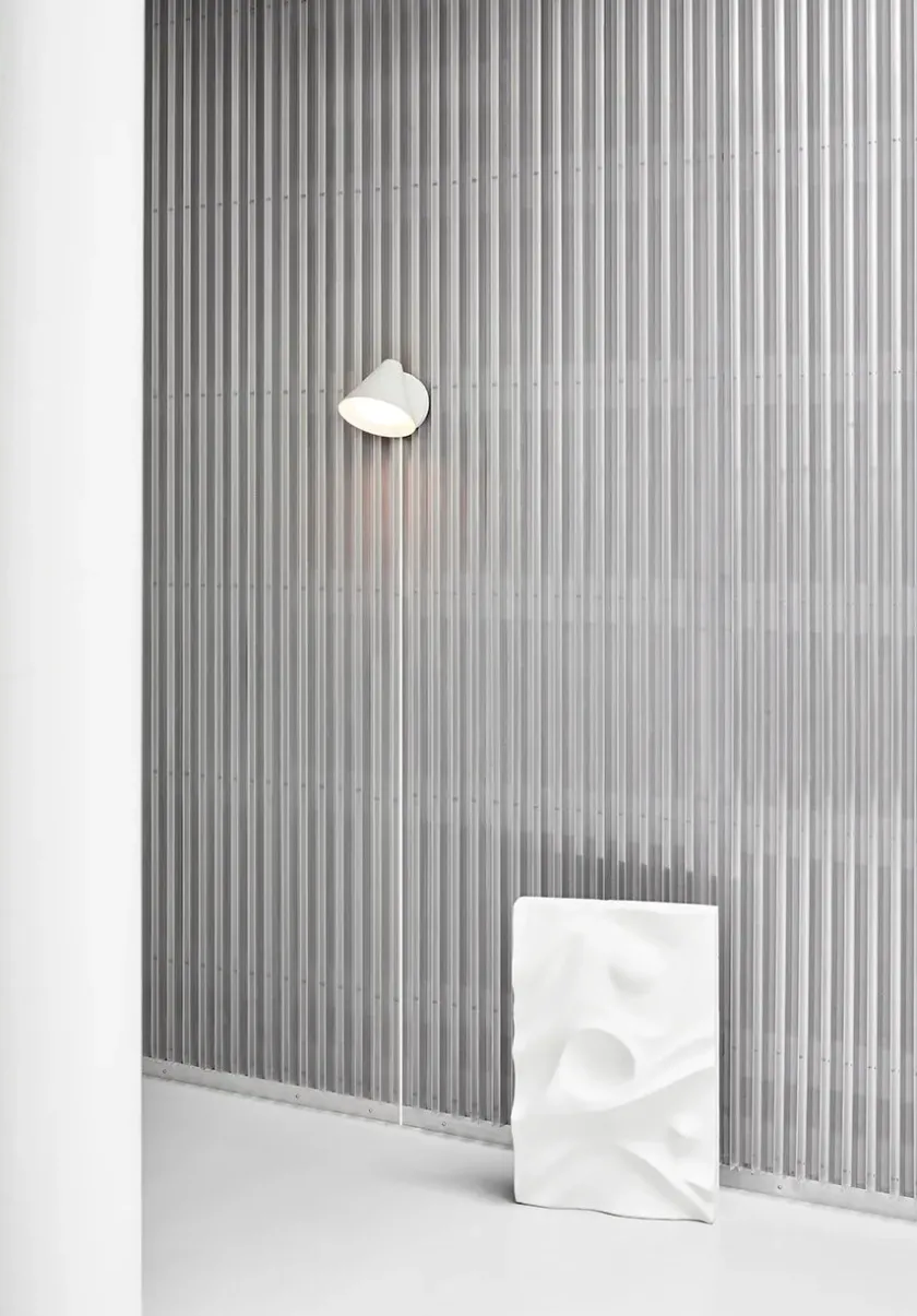 Keglen kollektionen er udvidet med blandt andet denne væglampe. Keglen væglampens karakteristiske koniske skærm har en indbygget buet afskærmning. Det giver et smukt og blændfrit nedadrettet lys. Der udsendes også et blidt, stemningsskabende lys opad gennem en diskret åbning i toppen af skærmen.