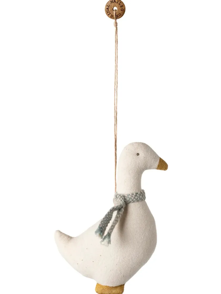 Sødt juleophæng fra Maileg. Den søde gås med blåt tørklæde er super fin blandt andet at hænge på juletræet. Mix den med nogle af de andre ophæng fra Maileg for et skønt julelook.
