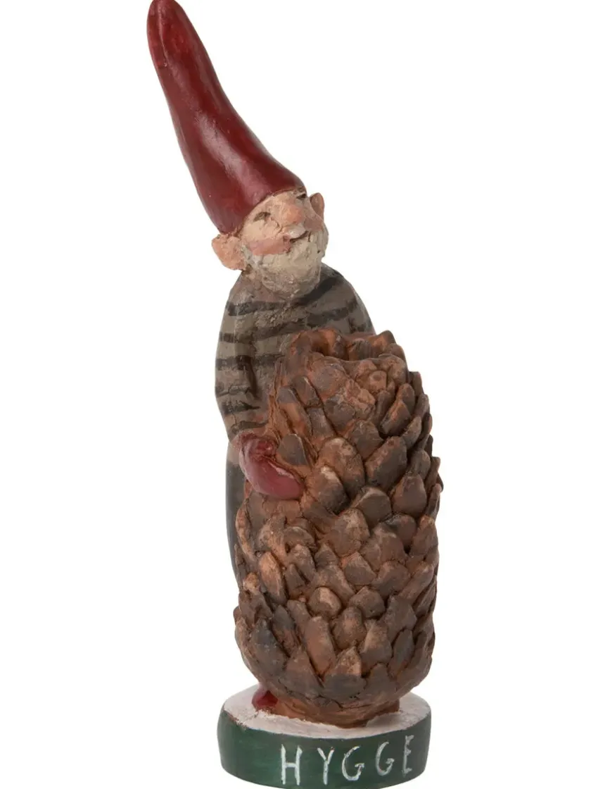 Et Maileg samleobjekt. Hyggenis nr. 2 er en del af kollektionen HYGGE. Kollektionen hylder det danske ord, der er kendt verden rundt. Nissen er pakket ind i en æske. Hyggenis passer rigtig godt ind i hjemmet i vintermånederne, da der oven på koglen er plads til et lys med ca. 12 mm i diameter.