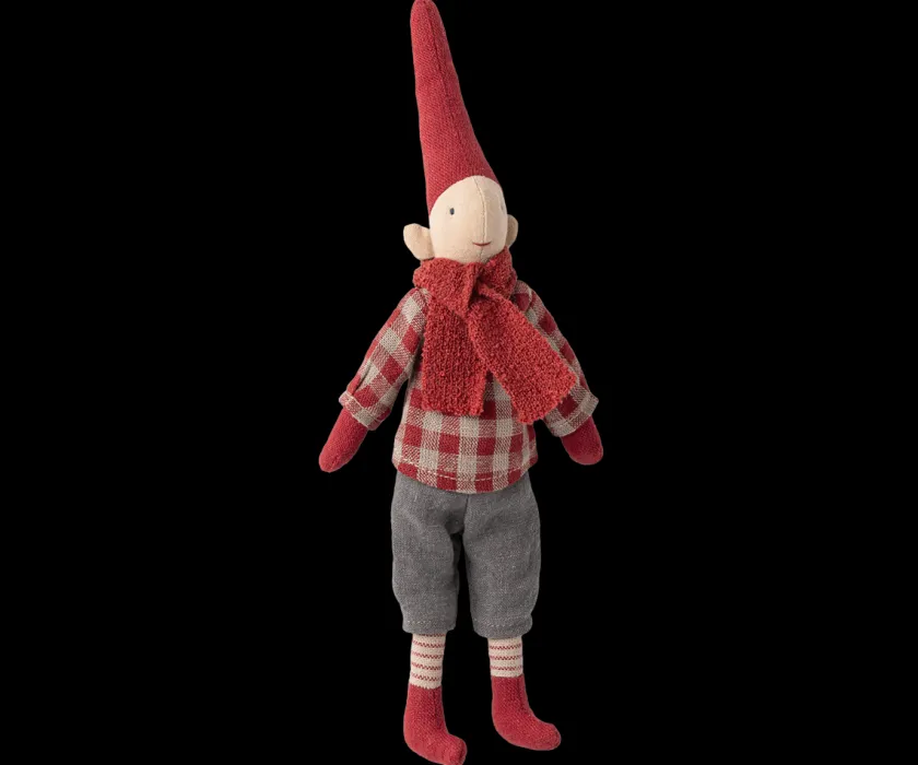 Mailegs Pixy-nisser er små klassikere, der bringer hygge og julestemning ind i hjemmet. Denne Pixy i størrelse 1 er en dreng iført en rød ternet skjorte, som giver ham et friskt og traditionelt udtryk. Med sin højde på ca. 26 cm passer han perfekt til en hylde, vindueskarmen eller som del af en lille juleopstilling. Figuren er syet i tekstil med fine håndlavede detaljer, hvilket gør hver nisse unik. Han kan stå alene eller kombineres med de øvrige Pixy-figurer for at skabe en hyggelig nissefamilie, der kan være en del af julens traditioner år efter år.