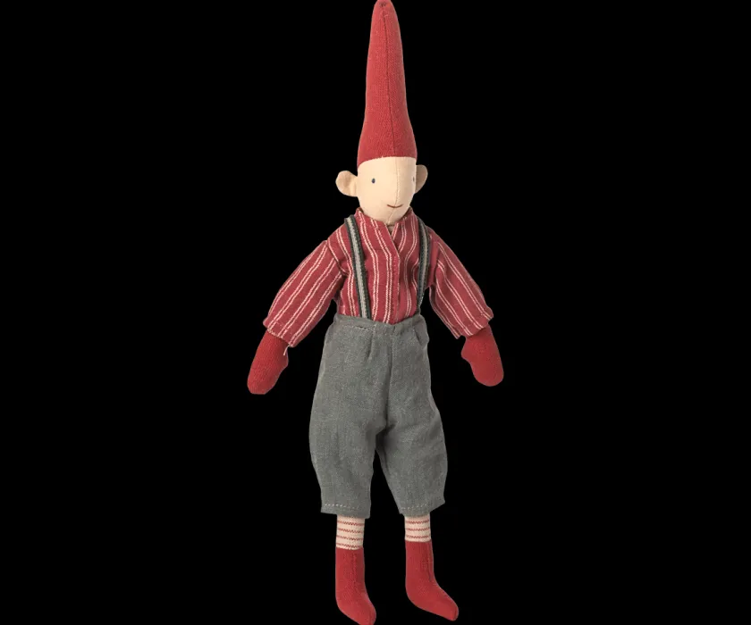 Mailegs Pixy-nisser er elskede samlerfigurer, der bringer tradition og hygge ind i hjemmet. Denne Pixy i størrelse 2 er en dreng iført en klassisk rød skjorte, der giver ham et festligt og nostalgisk udtryk. Med sin højde på ca. 31 cm passer han perfekt til en hylde, i vindueskarmen eller som del af en juleopstilling. Figuren er fremstillet i tekstil med fine håndlavede detaljer, hvilket gør hver Pixy unik. Han kan stå alene eller kombineres med Pixy-pigen i samme størrelse for at skabe et charmerende nissepar.
