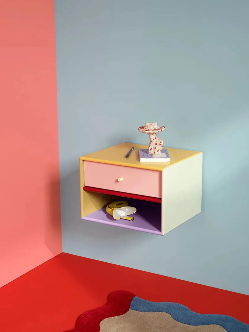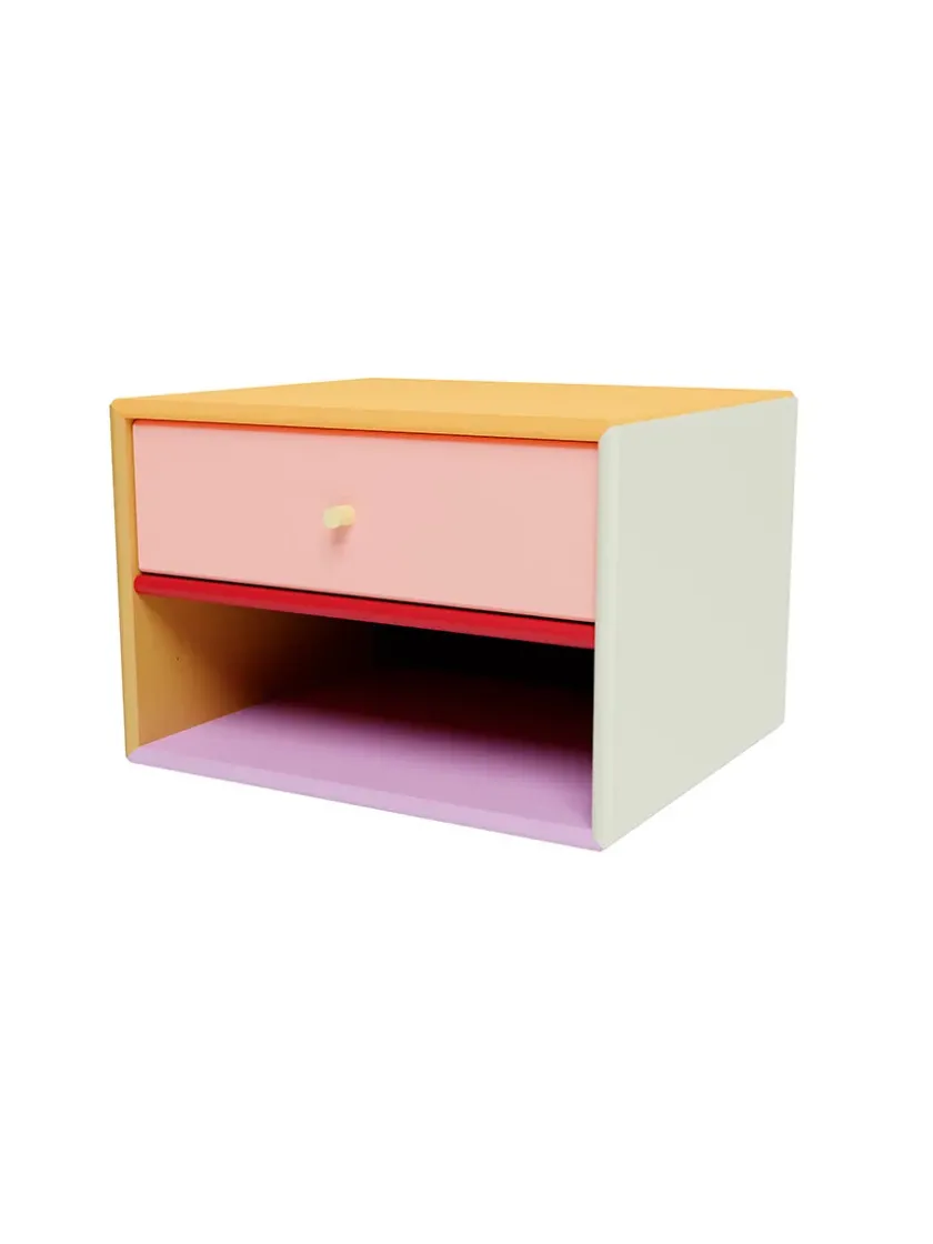 KIMPOP x Montana Montanas Dash Sengebord har fået en overhaling af den danske designduo, KIMPOP. KIMPOP består af ægteparret, Sofie Linde og Joakim Ingversen, som er kendte fra dansk TV. KIMPOP er af den overbevisning, at design og indretning skal være sjovt, uforudsigeligt og personligt. Dash er et lille sengebord, der både har skuffe og hylde. Du kan gemme det væk, der skal gemmes væk, og så kan du have din bog liggende på hylden. Dash har den perfekte størrelse at bruge ved siden af sengen, og med KIMPOPs farvekombination, er du sikret et personligt sengebord, der vækker opsigt. KIMPOP kollektionen sælges til og med d. 31/12 2025.