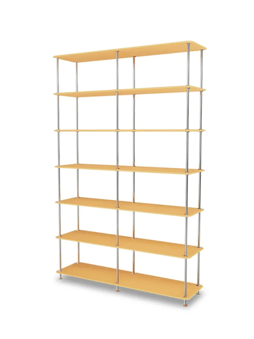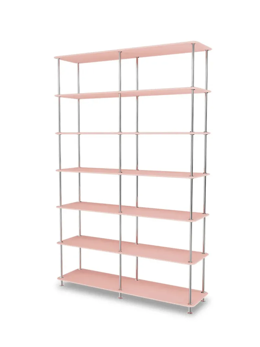 Nu kommer Montanas populære Montana Free System med skelet i krom. Det smukke krom står enormt flot til de i forvejen super lækre Montana farver. Montana Free systemet er fleksibelt, og du kan tilføje skuffer og tekstilpaneler. Med Montana Free kan du personliggøre dit hjem yderligere. Vælg den farve der taler til dig. Montana Free reolsystemet er opbygget af lakerede MDF-hylder i dybde 38 adskilt af tynde stager i krom, der giver et let og svævende udtryk og understreger de horisontale hylder.