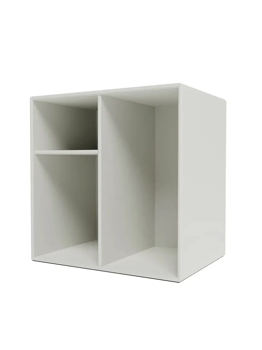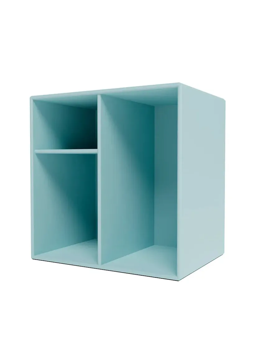 Montana Mini er en serie med mindre opbevaringsmoduler, som laves i 10 forskellige farver. Dette modul har monteret en skillevæg samt en hylde. Opstillingen er fast, og hylderne kan ikke flyttes på. Serien laves af 8 millimeter MDF modsat de 12 millimeter, som resten af Montanas reoler. Ophæng medfølger.