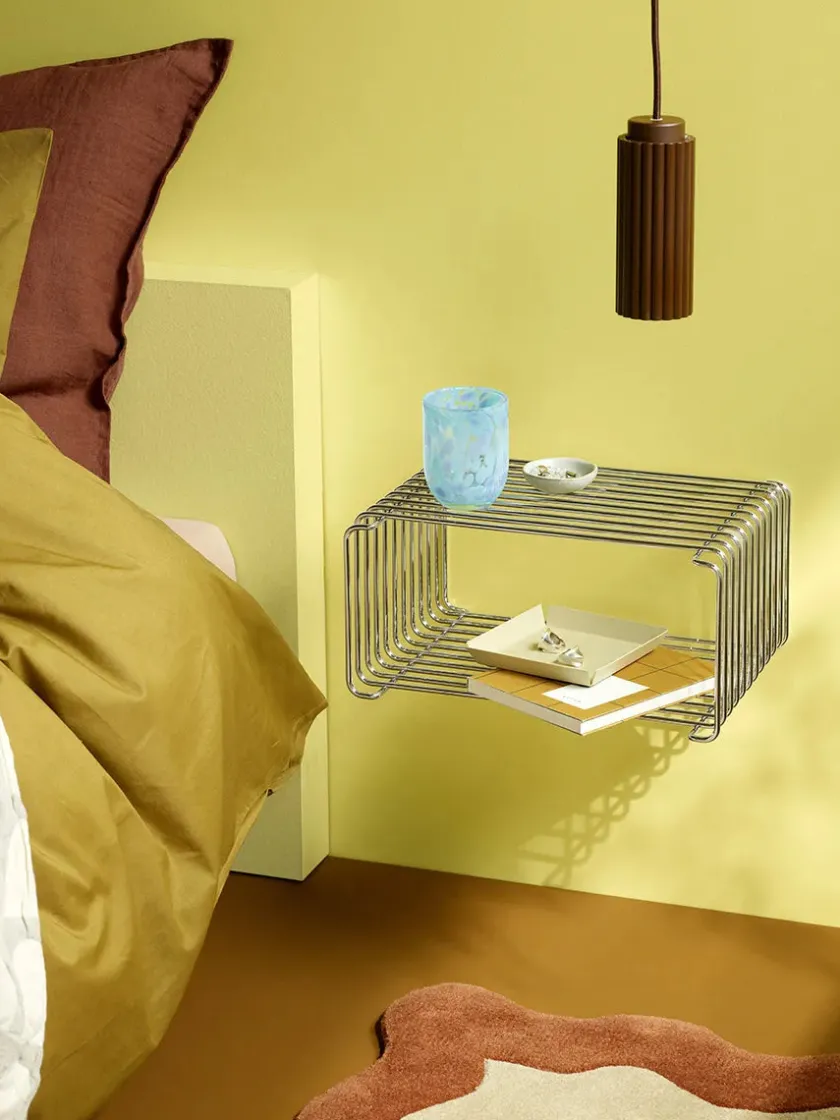 Panton Wire er et must-have for designelskere, der ønsker en stilren, fleksibel og ikonisk opbevaringsløsning til hjemmet. Brug den nye størrelse i kombination med resten af Wire modulerne, som sengebord eller som skohylder.