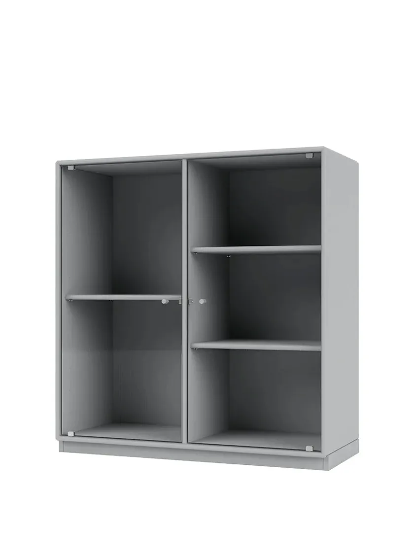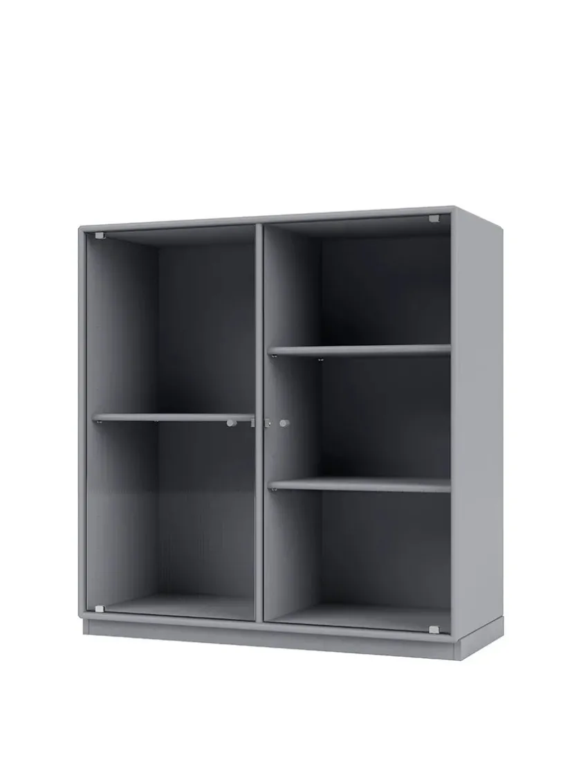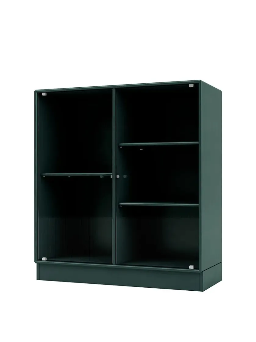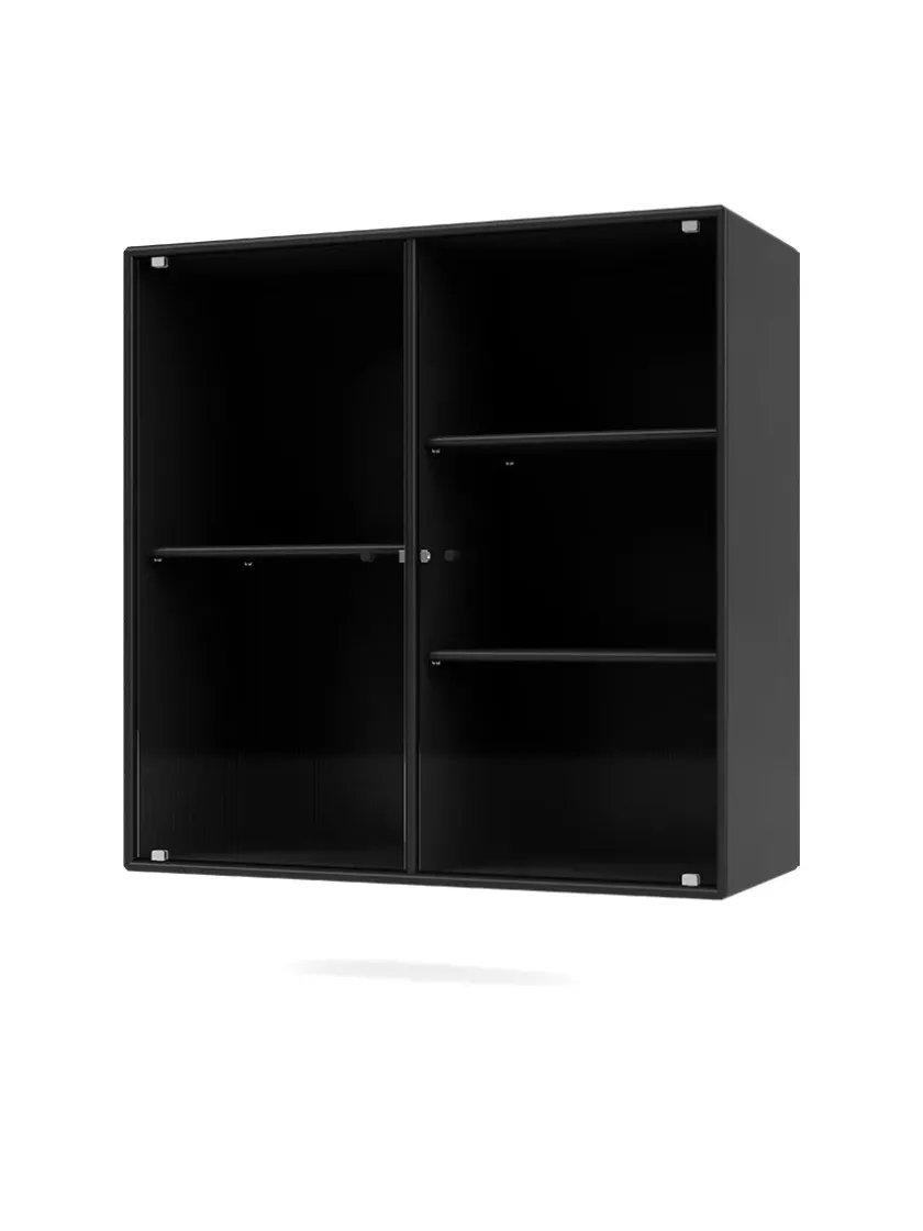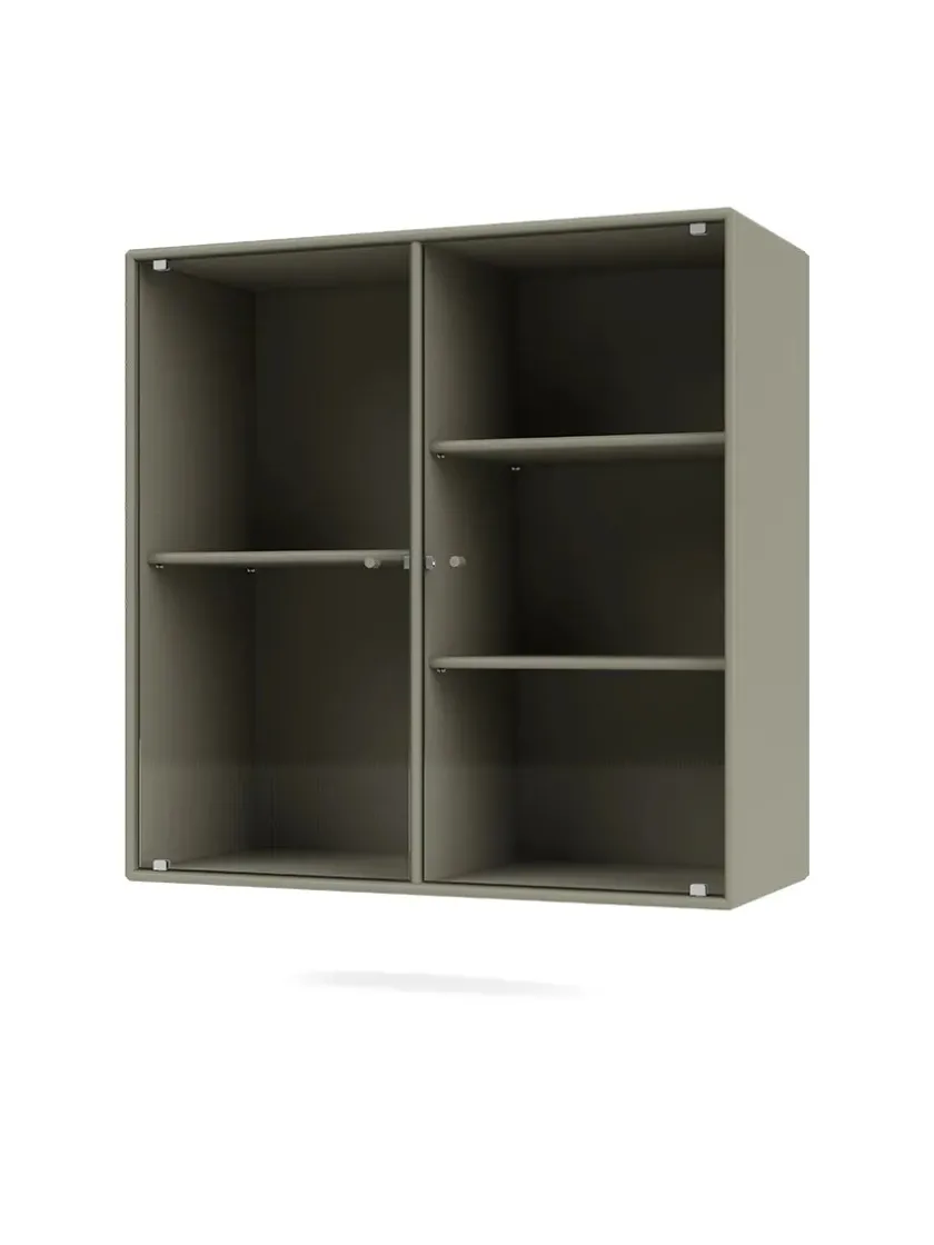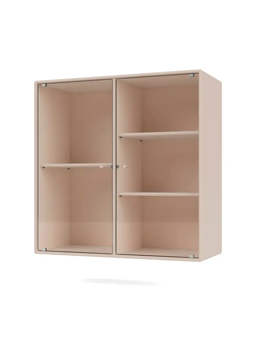 Vær opmærksom på at glaslågerne er i matteret, rillet glas Ripple II er et vitrineskab, der kan rumme dine finere ejendele, som du ikke nødvendigvis ønsker at gemme væk. Skabet har en perforeret glaslåge med lakerede greb. Ripple II skabet er certificeret med det danske indeklimamærke og det officielle EU Ecolabel, hvilket gør det til et sikkert valg for dig, dine omgivelser og miljøet. Skabet kommer i Montanas poetiske farvepalet med 41 nuancer, som er udarbejdet af danske Margrethe Odgaard.