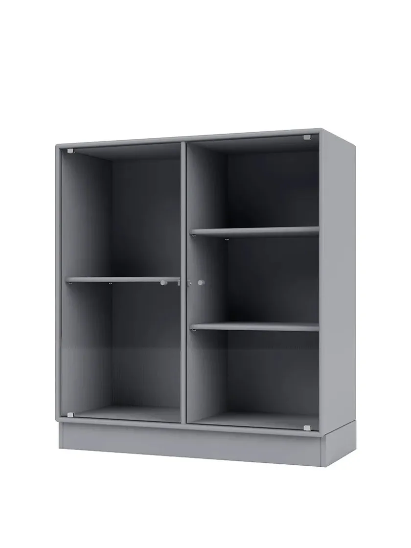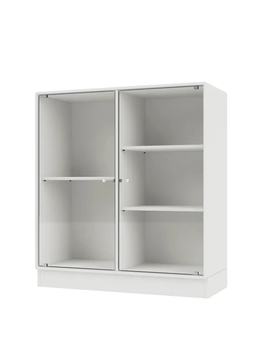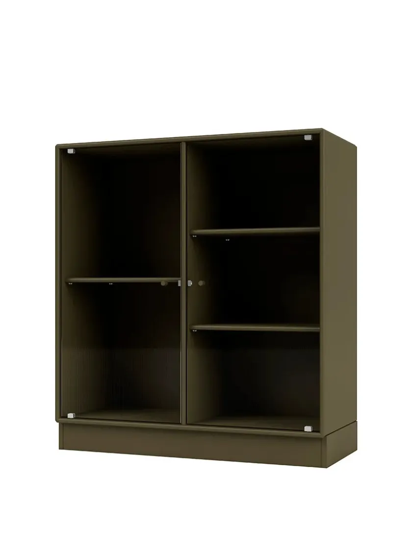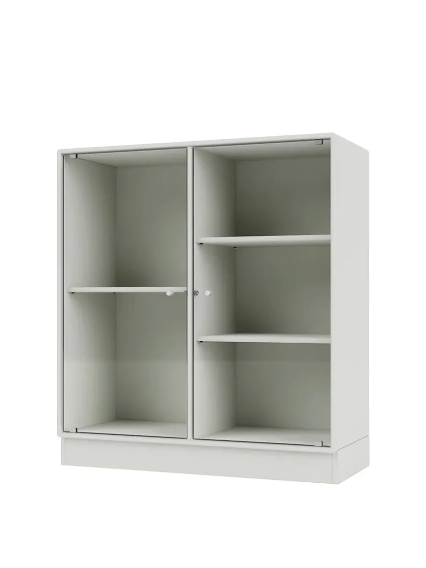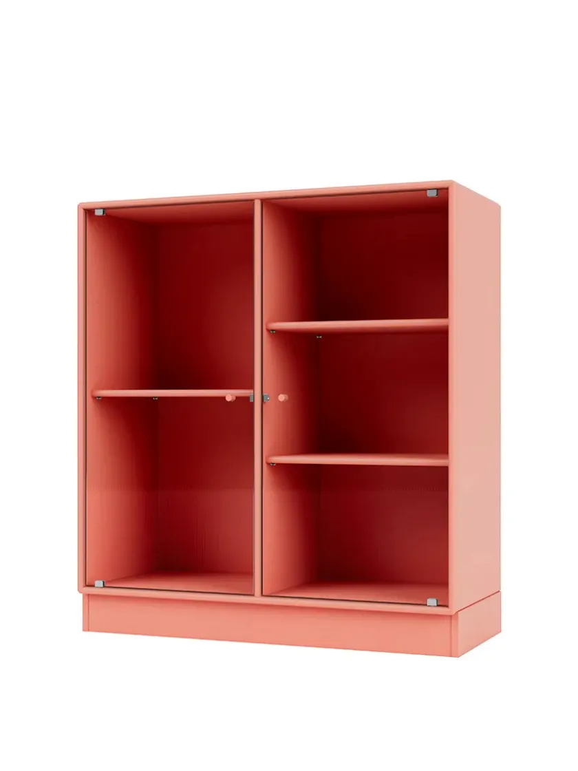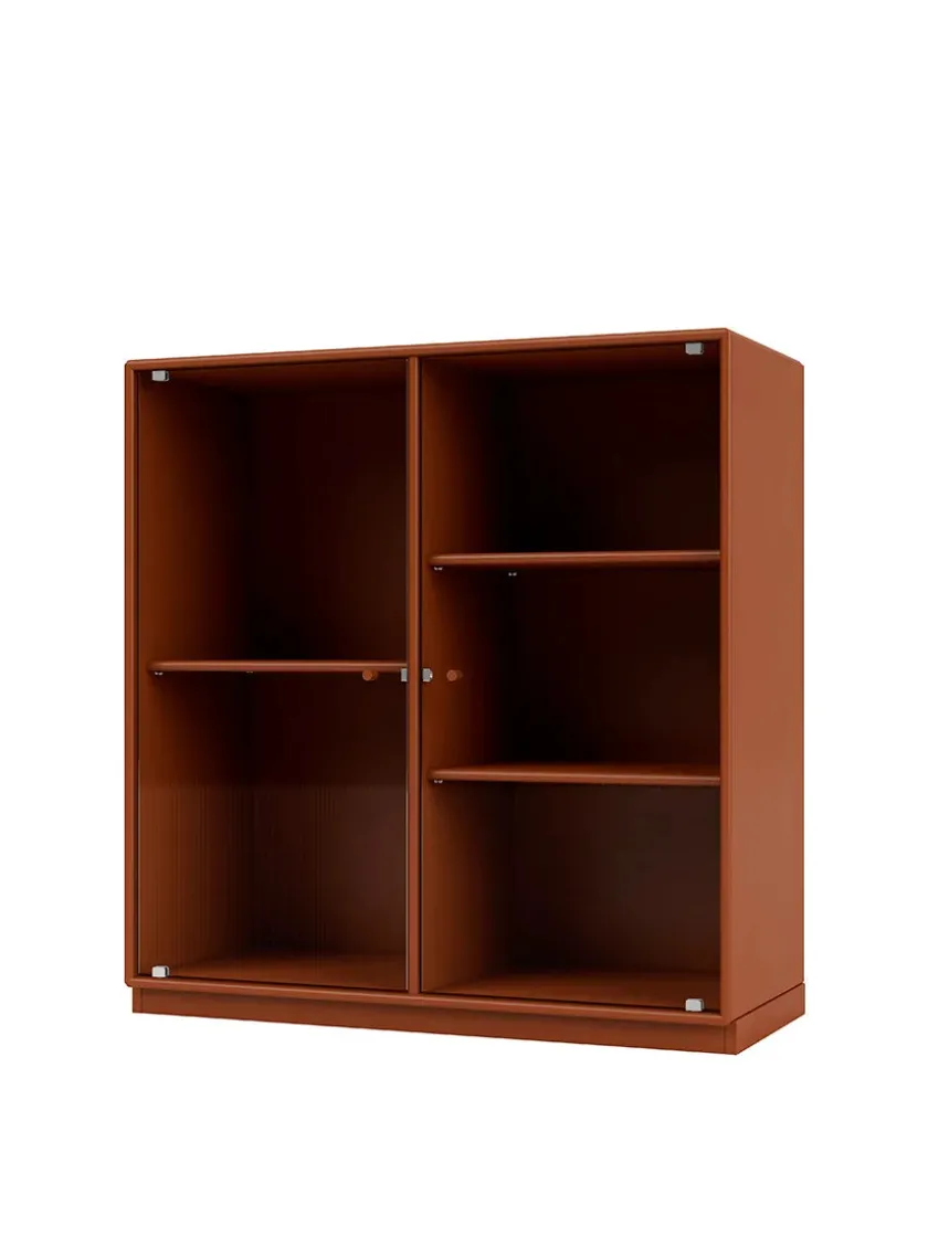 Vær opmærksom på at glaslågerne er i matteret, rillet glas Ripple II er et vitrineskab, der kan rumme dine finere ejendele, som du ikke nødvendigvis ønsker at gemme væk. Skabet har en perforeret glaslåge med lakerede greb. Ripple II skabet er certificeret med det danske indeklimamærke og det officielle EU Ecolabel, hvilket gør det til et sikkert valg for dig, dine omgivelser og miljøet. Skabet kommer i Montanas poetiske farvepalet med 41 nuancer, som er udarbejdet af danske Margrethe Odgaard.