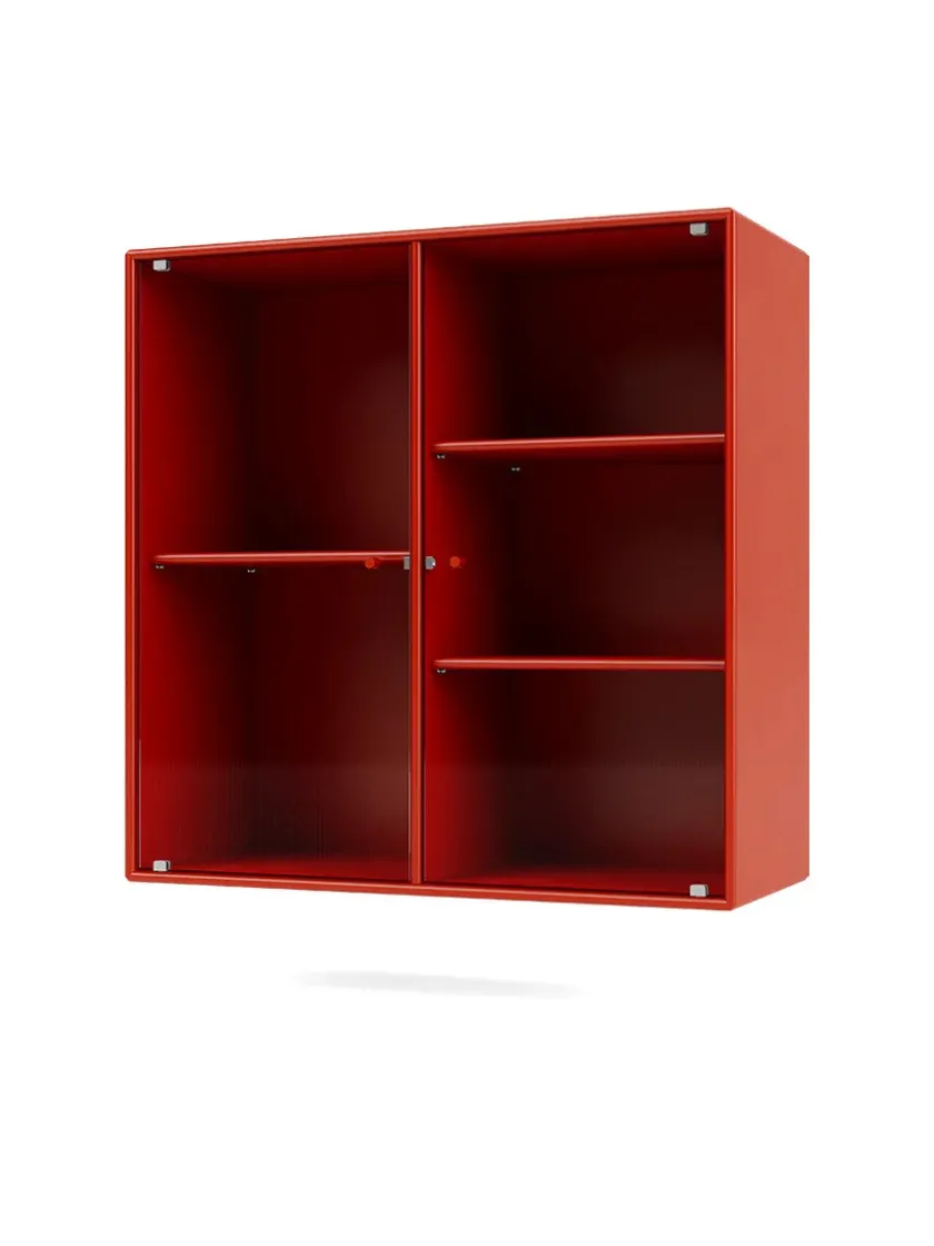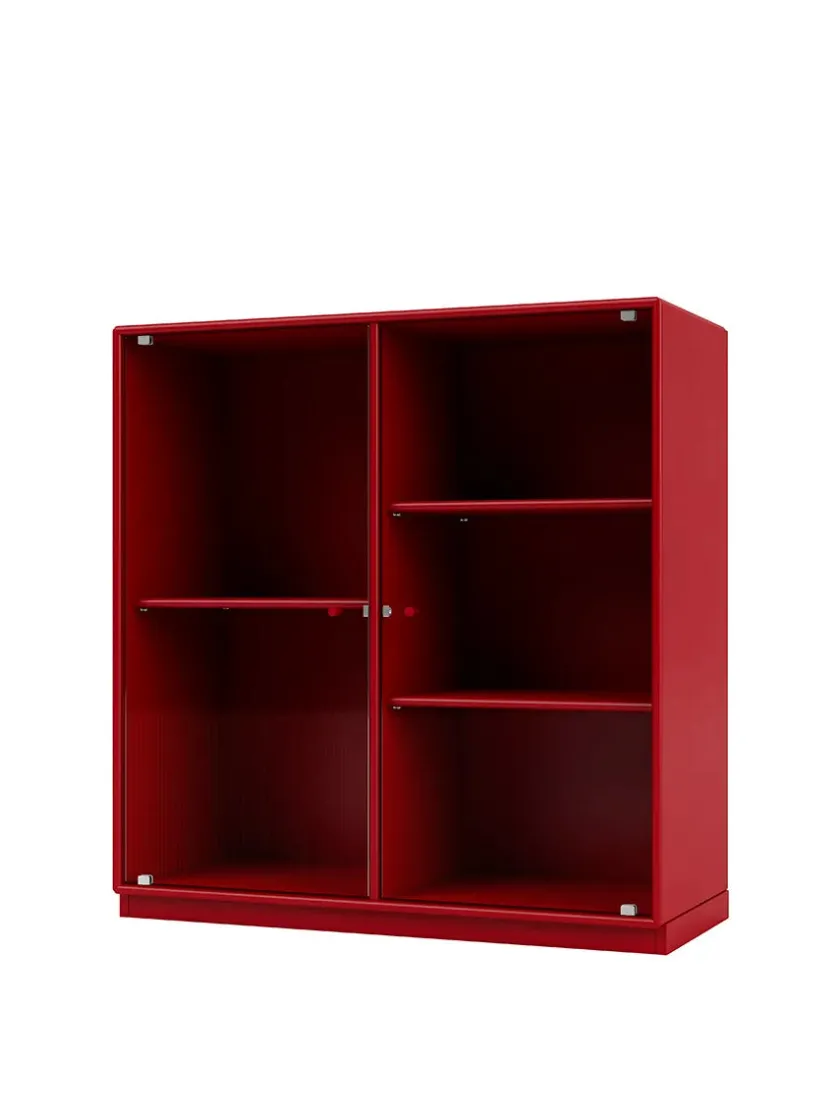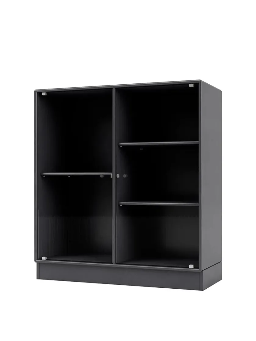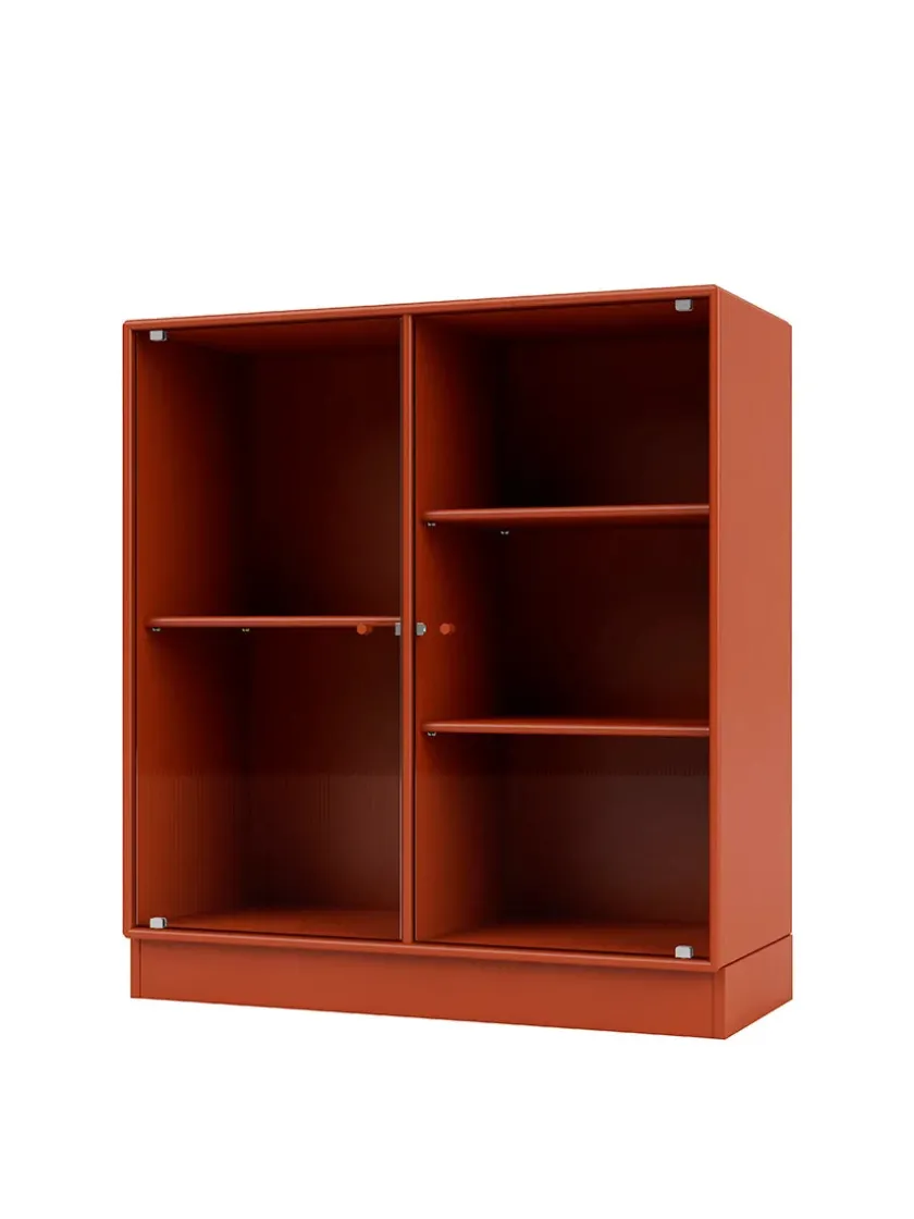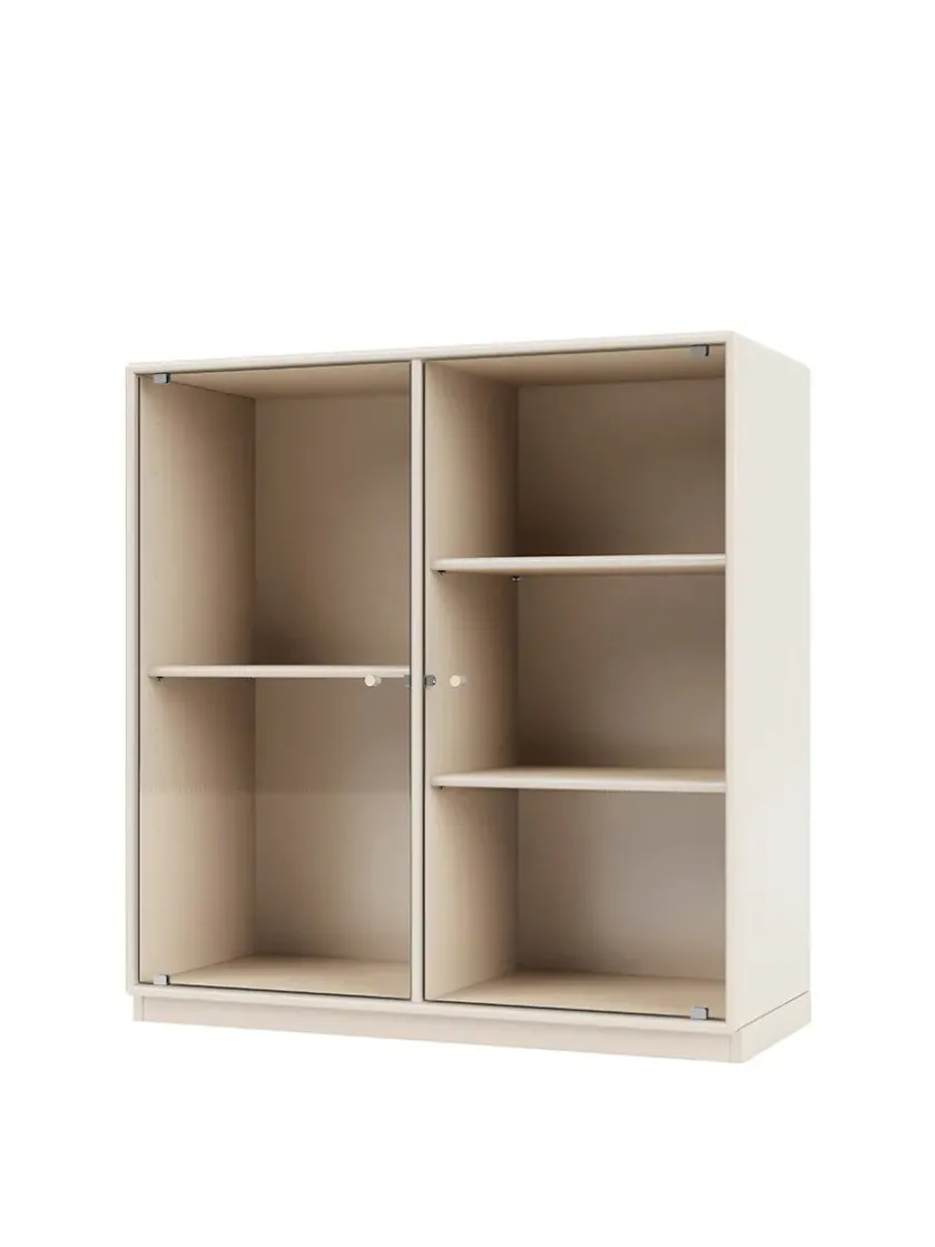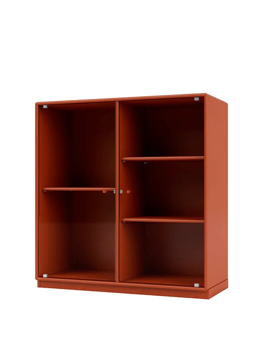 Vær opmærksom på at glaslågerne er i matteret, rillet glas Ripple II er et vitrineskab, der kan rumme dine finere ejendele, som du ikke nødvendigvis ønsker at gemme væk. Skabet har en perforeret glaslåge med lakerede greb. Ripple II skabet er certificeret med det danske indeklimamærke og det officielle EU Ecolabel, hvilket gør det til et sikkert valg for dig, dine omgivelser og miljøet. Skabet kommer i Montanas poetiske farvepalet med 41 nuancer, som er udarbejdet af danske Margrethe Odgaard.