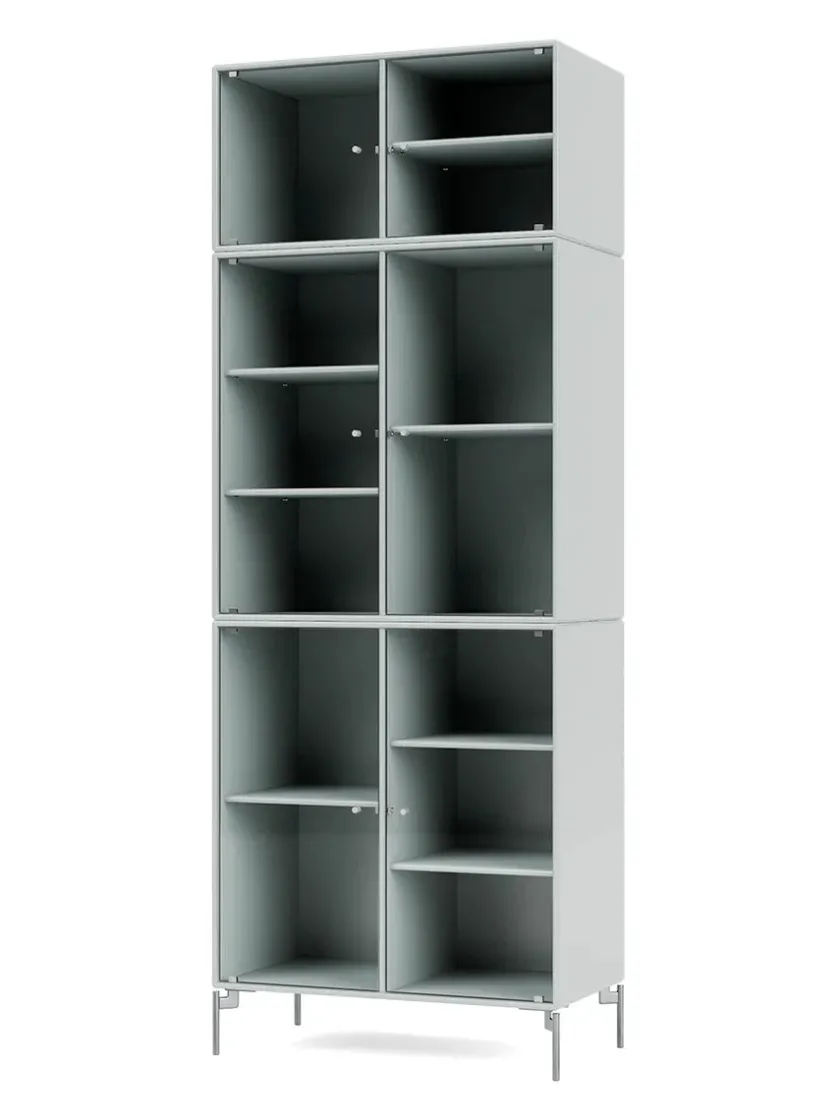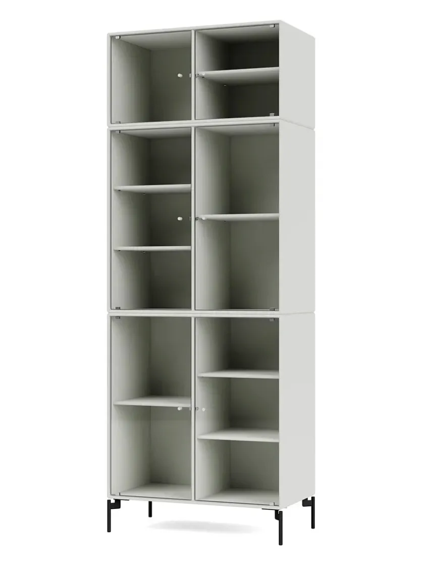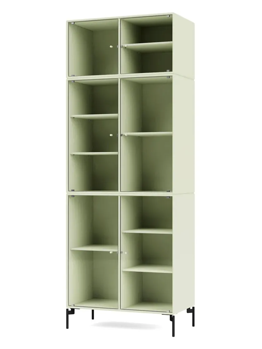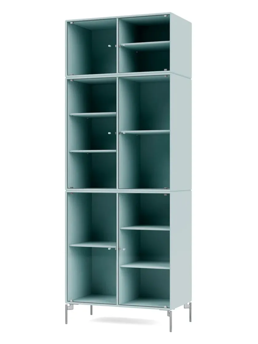 Vær opmærksom på at glaslågerne er i matteret, rillet glas Ripple IV er et vitrineskab, der kan rumme dine finere ejendele, som du ikke nødvendigvis ønsker at gemme væk. Skabet har perforerede glaslåger med lakerede greb. Ripple IV skabet er certificeret med det danske indeklimamærke og det officielle EU Ecolabel, hvilket gør det til et sikkert valg for dig, dine omgivelser og miljøet. Skabet kommer i Montanas poetiske farvepalet med 41 nuancer, som er udarbejdet af danske Margrethe Odgaard.