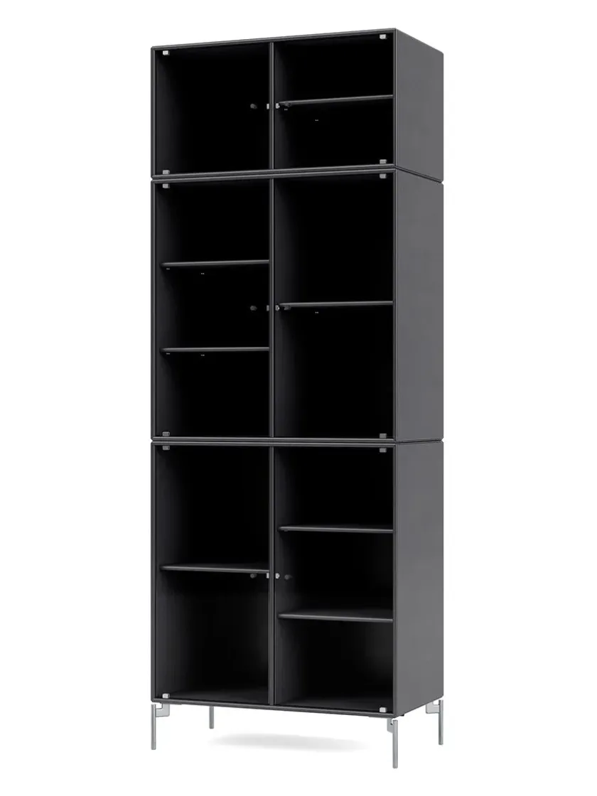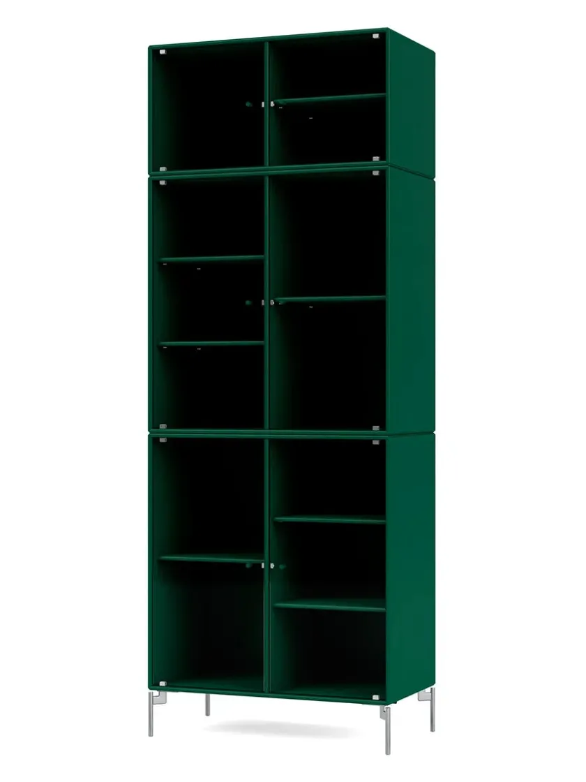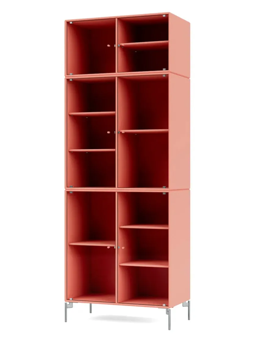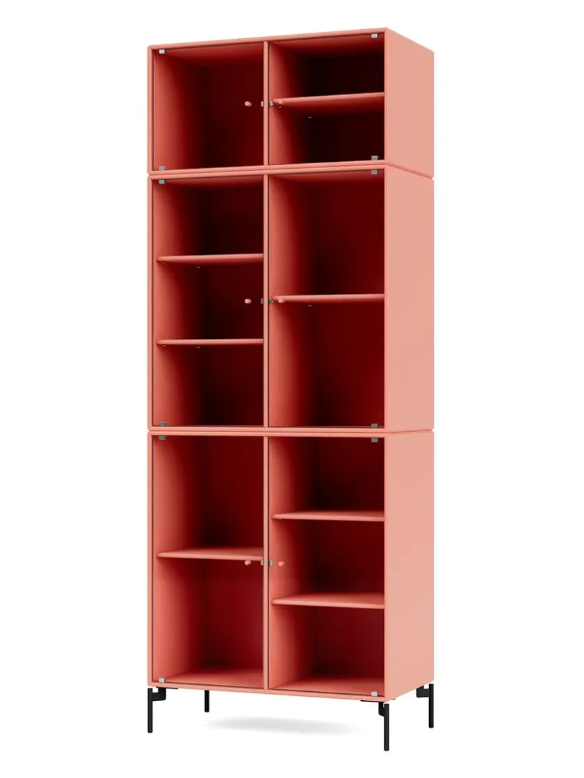 Vær opmærksom på at glaslågerne er i matteret, rillet glas Ripple IV er et vitrineskab, der kan rumme dine finere ejendele, som du ikke nødvendigvis ønsker at gemme væk. Skabet har perforerede glaslåger med lakerede greb. Ripple IV skabet er certificeret med det danske indeklimamærke og det officielle EU Ecolabel, hvilket gør det til et sikkert valg for dig, dine omgivelser og miljøet. Skabet kommer i Montanas poetiske farvepalet med 41 nuancer, som er udarbejdet af danske Margrethe Odgaard.