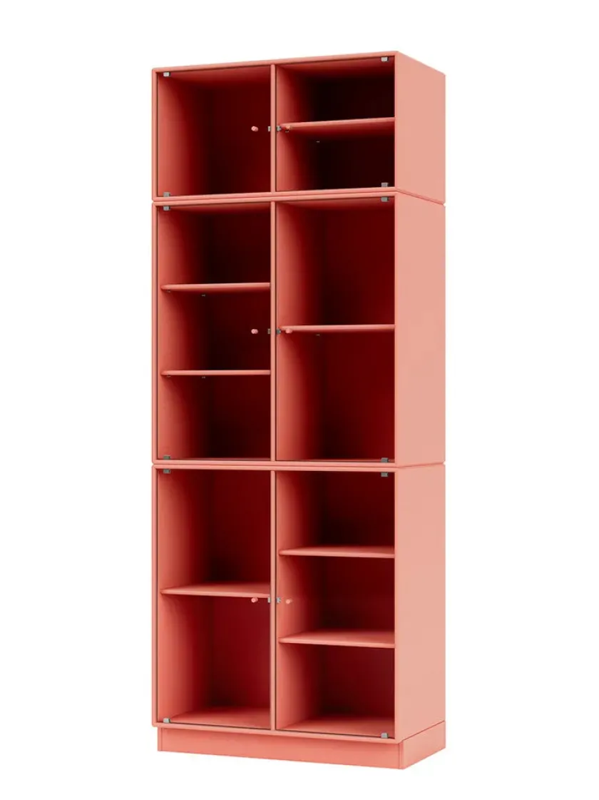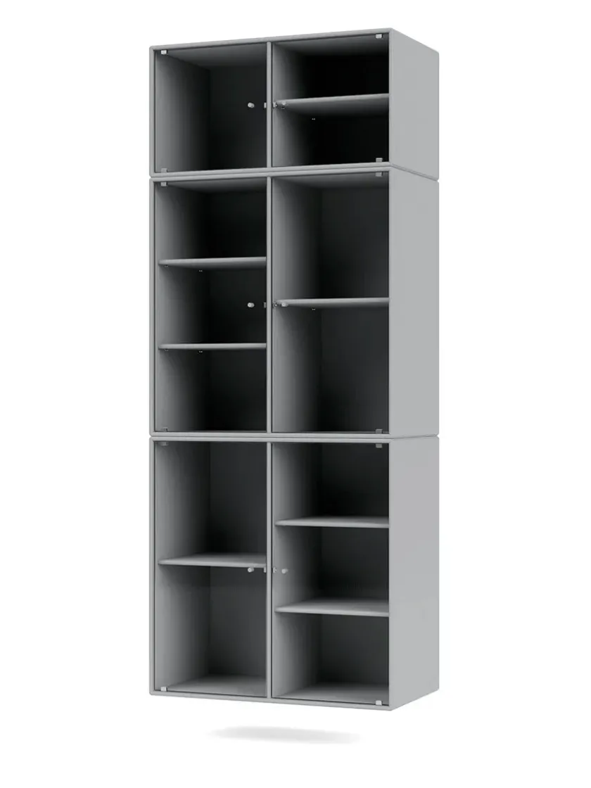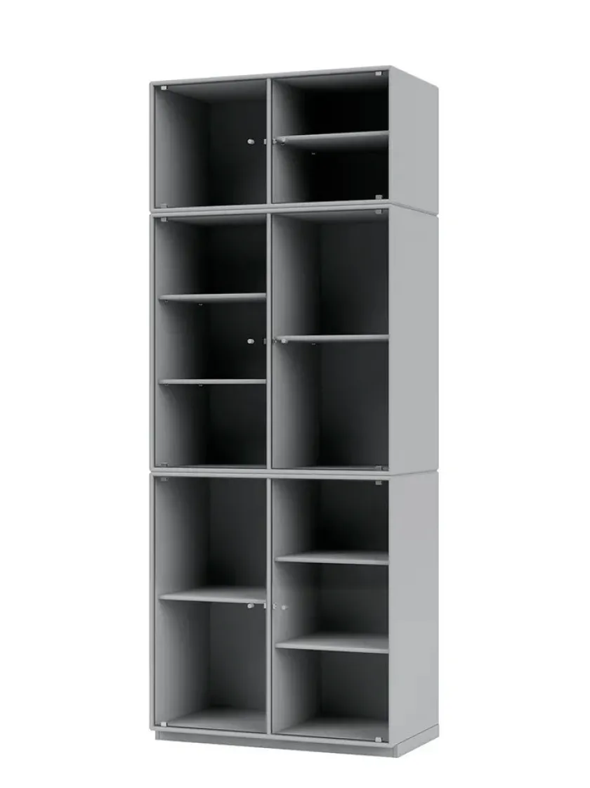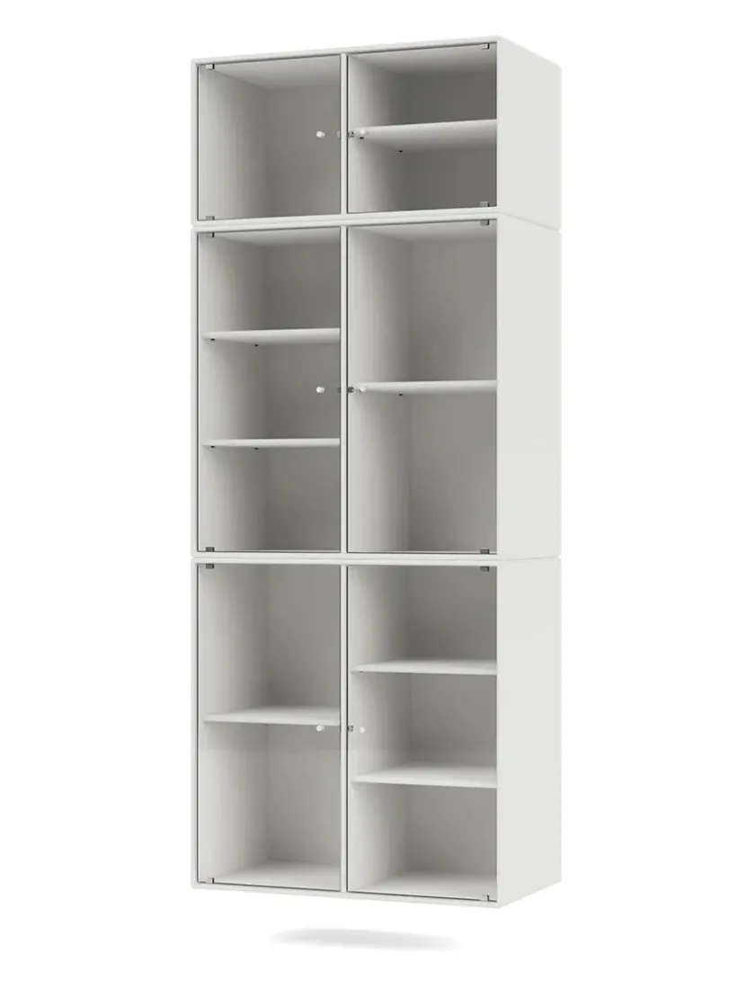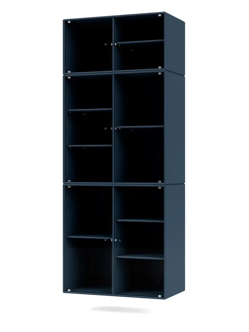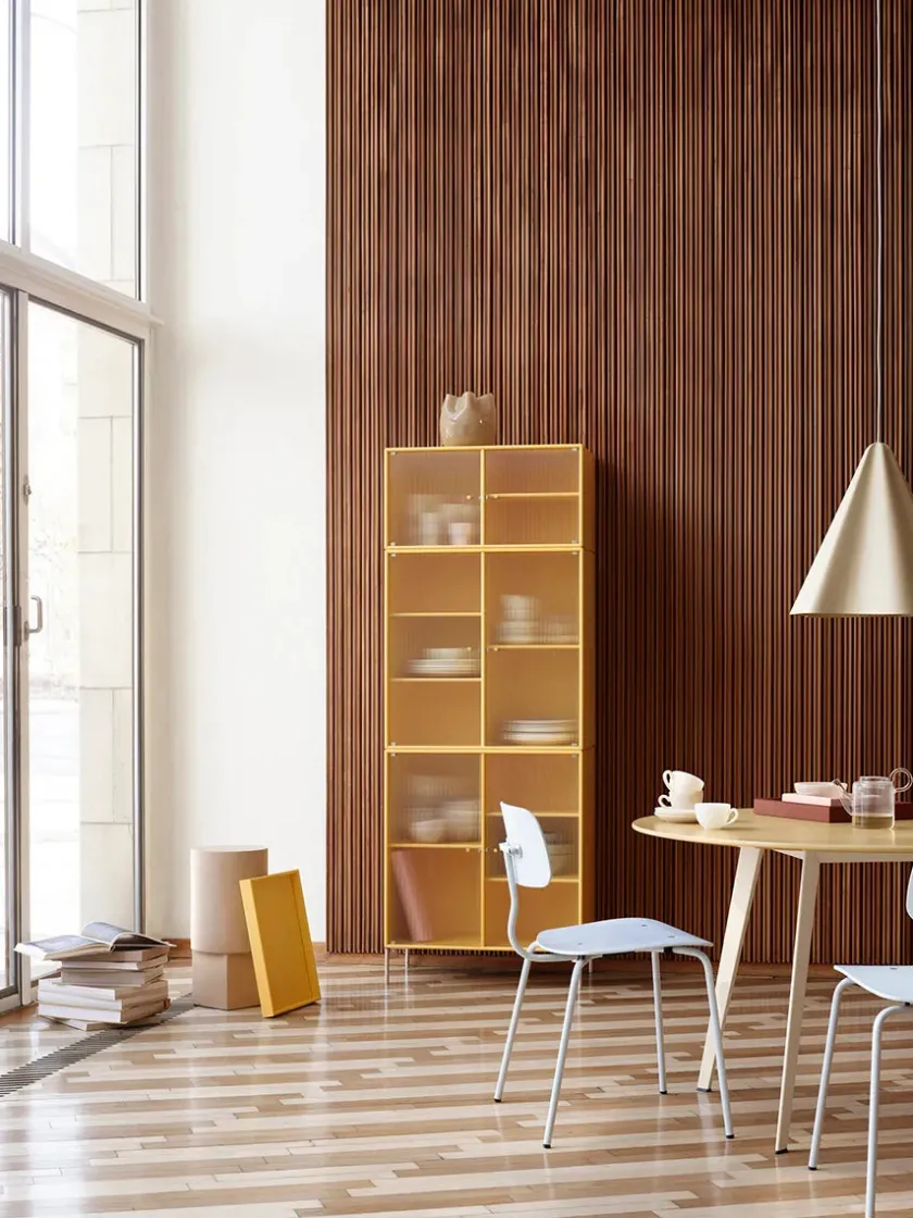 Vær opmærksom på at glaslågerne er i matteret, rillet glas Ripple IV er et vitrineskab, der kan rumme dine finere ejendele, som du ikke nødvendigvis ønsker at gemme væk. Skabet har perforerede glaslåger med lakerede greb. Ripple IV skabet er certificeret med det danske indeklimamærke og det officielle EU Ecolabel, hvilket gør det til et sikkert valg for dig, dine omgivelser og miljøet. Skabet kommer i Montanas poetiske farvepalet med 41 nuancer, som er udarbejdet af danske Margrethe Odgaard.