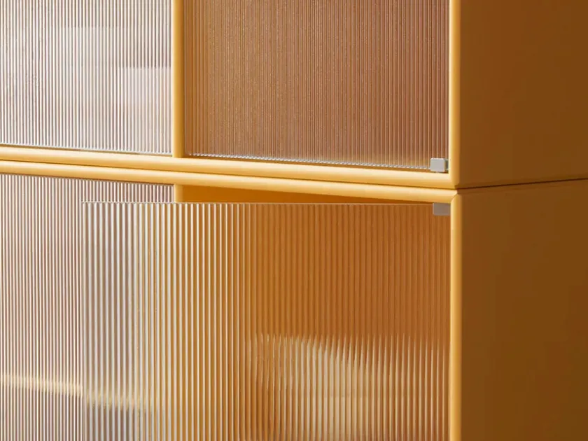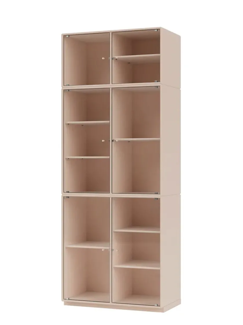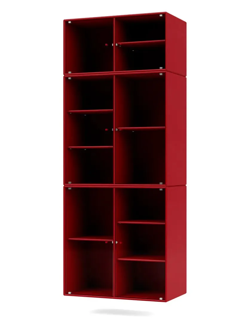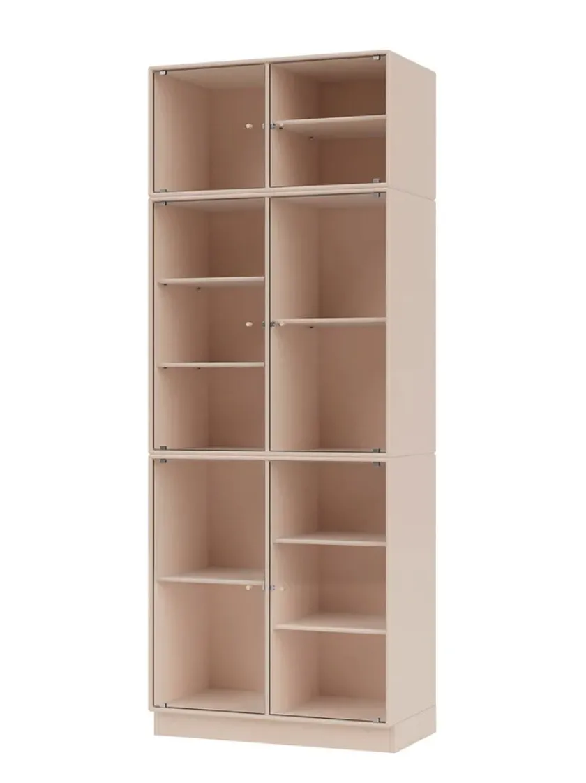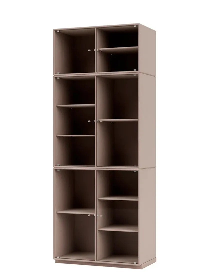 Vær opmærksom på at glaslågerne er i matteret, rillet glas Ripple IV er et vitrineskab, der kan rumme dine finere ejendele, som du ikke nødvendigvis ønsker at gemme væk. Skabet har perforerede glaslåger med lakerede greb. Ripple IV skabet er certificeret med det danske indeklimamærke og det officielle EU Ecolabel, hvilket gør det til et sikkert valg for dig, dine omgivelser og miljøet. Skabet kommer i Montanas poetiske farvepalet med 41 nuancer, som er udarbejdet af danske Margrethe Odgaard.