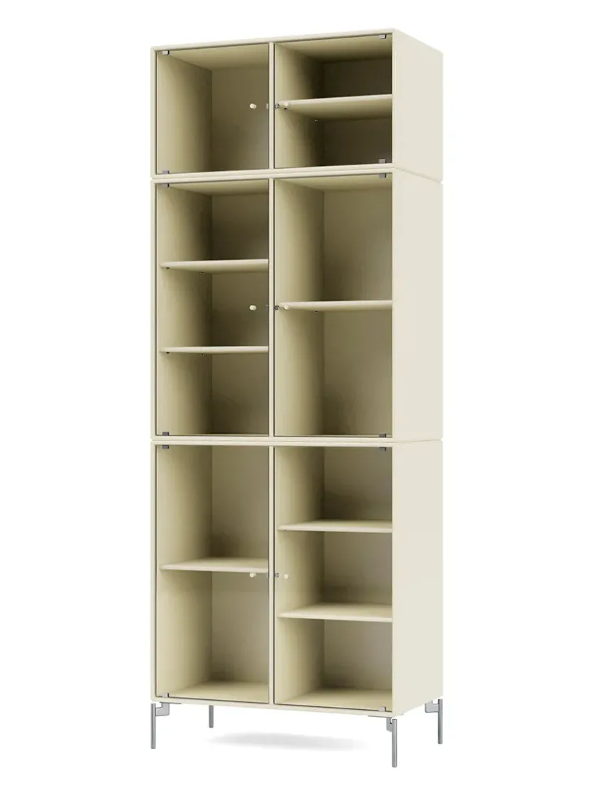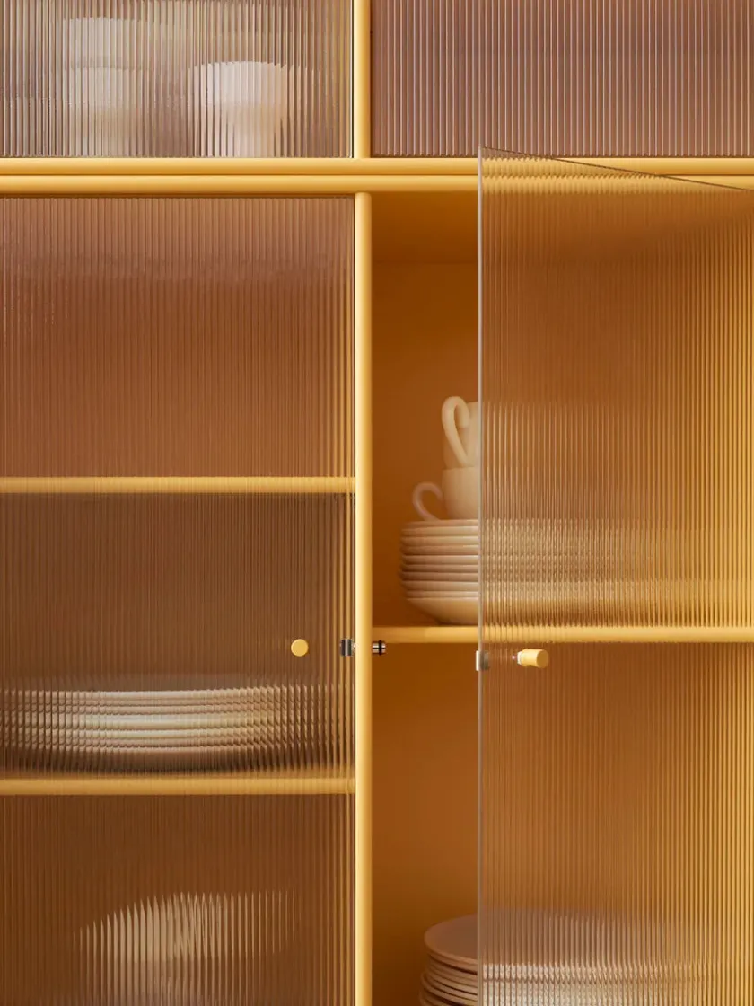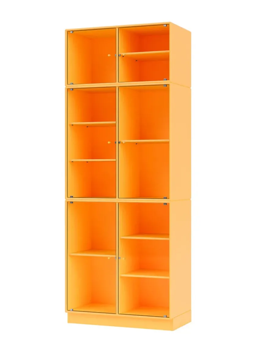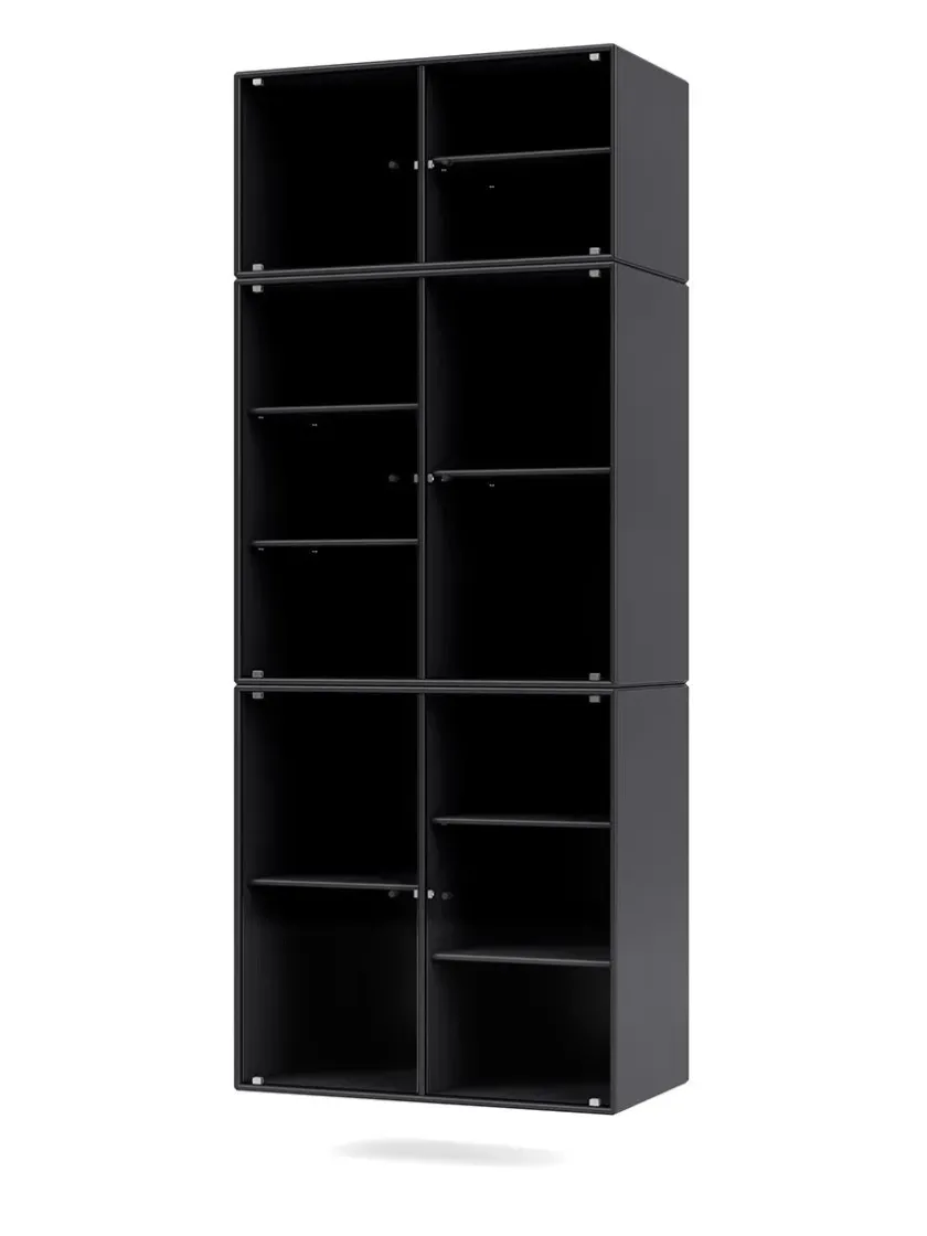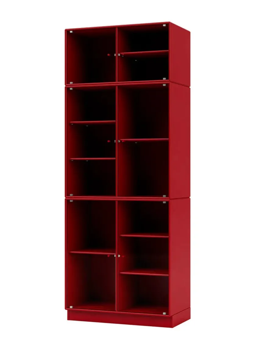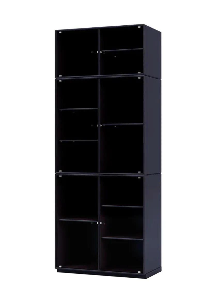 Vær opmærksom på at glaslågerne er i matteret, rillet glas Ripple IV er et vitrineskab, der kan rumme dine finere ejendele, som du ikke nødvendigvis ønsker at gemme væk. Skabet har perforerede glaslåger med lakerede greb. Ripple IV skabet er certificeret med det danske indeklimamærke og det officielle EU Ecolabel, hvilket gør det til et sikkert valg for dig, dine omgivelser og miljøet. Skabet kommer i Montanas poetiske farvepalet med 41 nuancer, som er udarbejdet af danske Margrethe Odgaard.