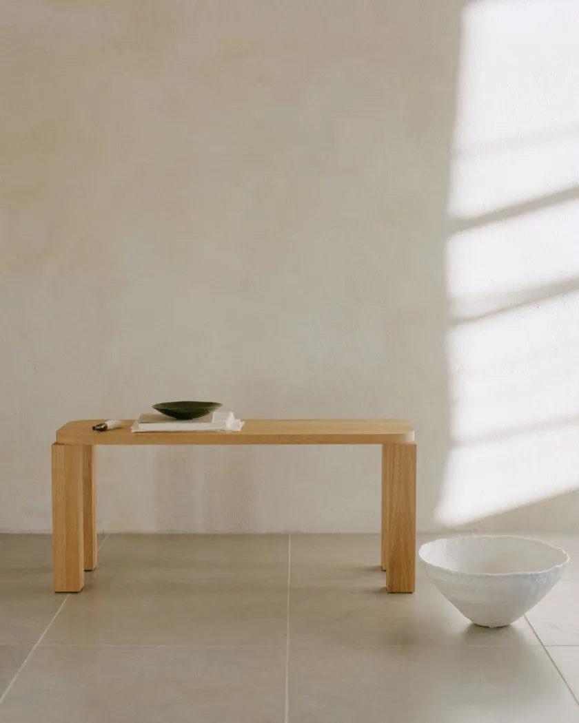 Atlas Bænk 100×32 er John Astburys moderne fortolkning af den klassiske post-og-overligger-arkitektur: runde, solide ben bærer en slank siddeflade i massiv eg. Resultatet er et roligt, skulpturelt udtryk med stor stabilitet uden visuel tyngde. Bænken passer perfekt ved spisebordet, i entréen eller for enden af sengen og fås i natur eller røget eg, så træets åretegning får lov at stå frem. Med sine kompakte mål (L100 × D32 × H46 cm) giver Atlas bænken fleksible siddepladser og en varm, taktil materialitet, der klæder ethvert hjem.