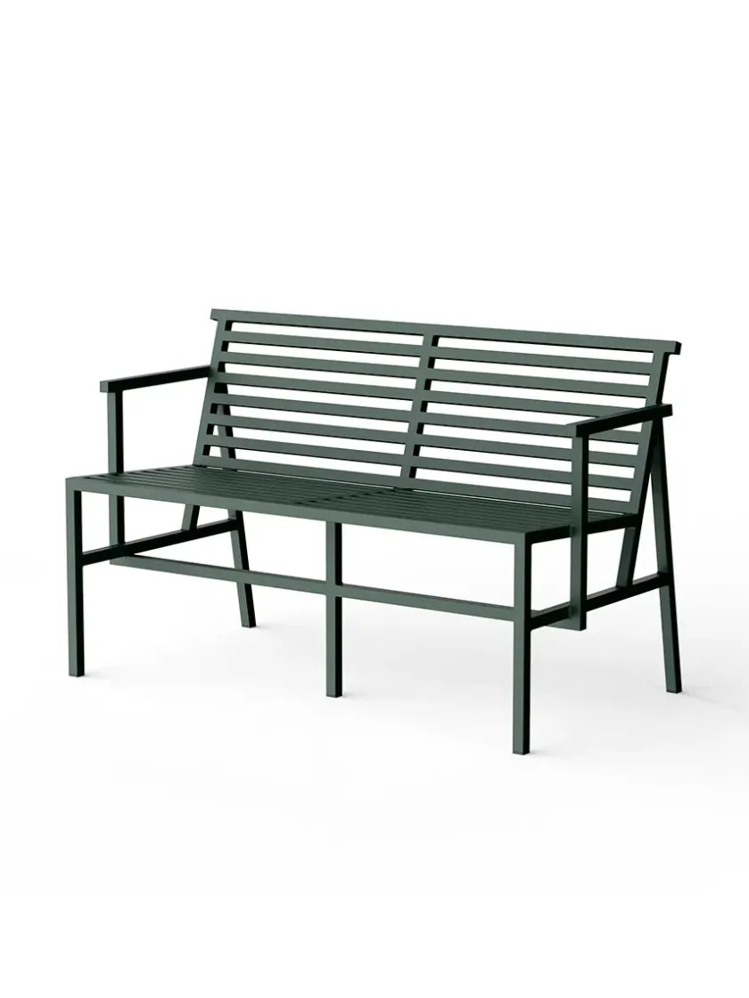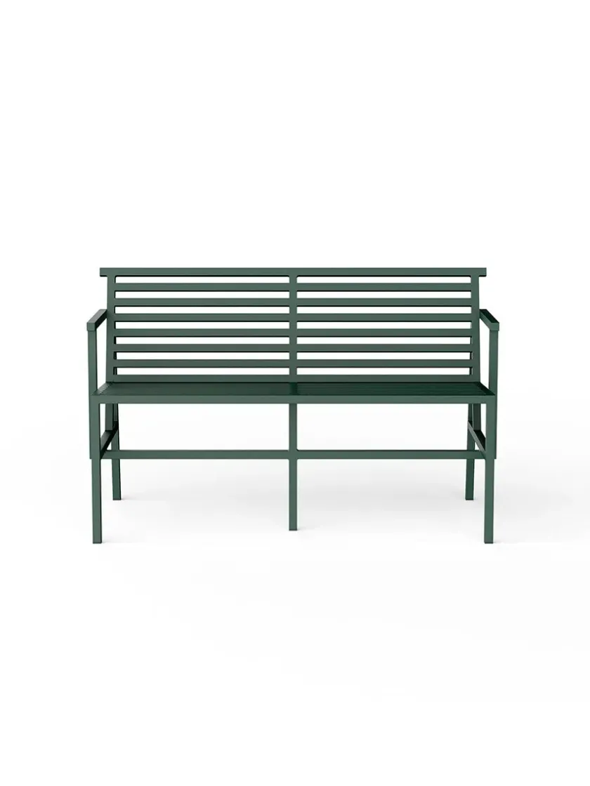 Grøn dining bench, som kan bruges ved spisebordet, fra danske 19 Outdoors. Bænken er lavet af aluminium og er pulverlakeret i en smuk grøn. Den æstetisk flotte og enkle bænk er designet af de engelske Butterfield brødre. Bænken er perfekt til udendørs brug.