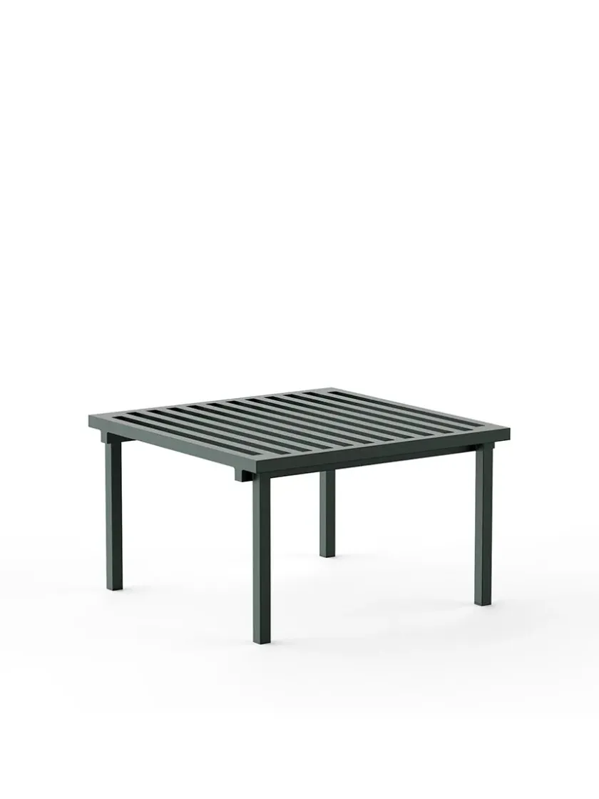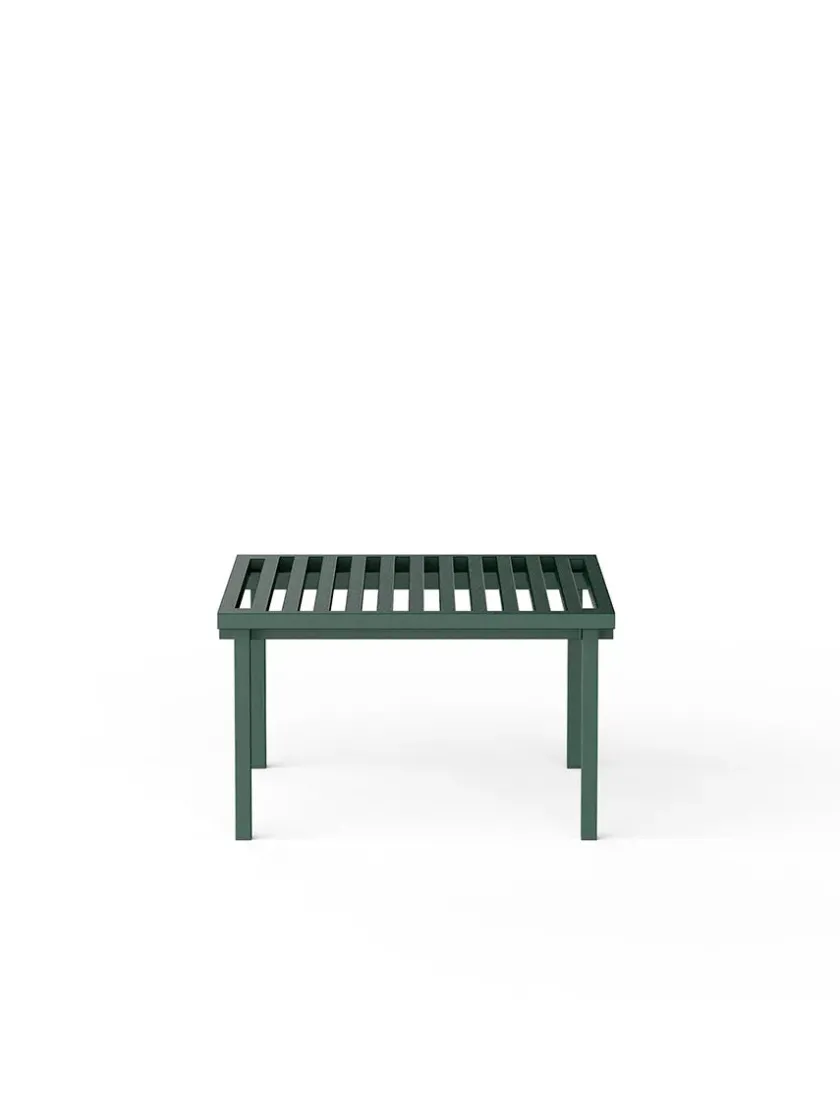 Grøn ottoman fra 19 Outdoors. Det lille bord er lavet af aluminium og er pulverlakeret grøn. Brug den som en skammel eller som et bord til dit udendørs loungesæt.