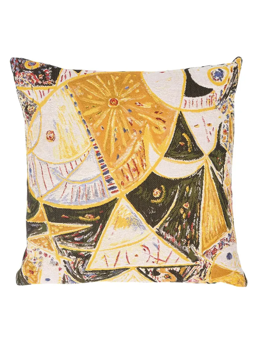 Sofapude fra Jules Pansu med Egill Jacobsen værket Fantasi i Brunt fra 1982. Pudebetrækket er af 100% duntæt bomuld fremstillet uden kemikalier. Puden leveres med en monteringspude produceret i Danmark.