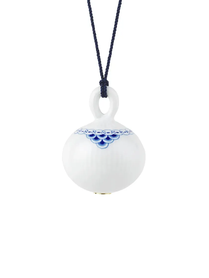 Porcelænsjulekuglerne fra Royal Copenhagen er perfekte samleobjekter! Denne julekugle er håndmalet med den fine blondekant fra Prinsesse-stellet. Den er smuk at have hængende på juletræet med andre julekugler eller have hængende fra en gren i vindueskarmen.