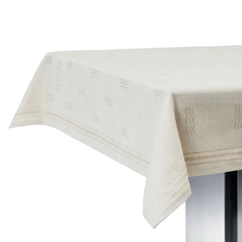 Bring en tidløs elegance til borddækningen med Royal Copenhagen Waves dug i råhvid. Dugen er vævet i en smuk struktur, der reflekterer Royal Copenhagens klassiske æstetik, og skaber et roligt, sofistikeret udtryk i enhver bordopdækning – uanset om den bruges til hverdag eller festlige lejligheder. Waves-serien er inspireret af bevægelsen i porcelænets ikoniske bølgemønstre og forener tradition med moderne tekstilkunst. Den bløde, slidstærke kvalitet og det lette fald understreger den høje håndværksmæssige standard, som kendetegner Royal Copenhagen.
