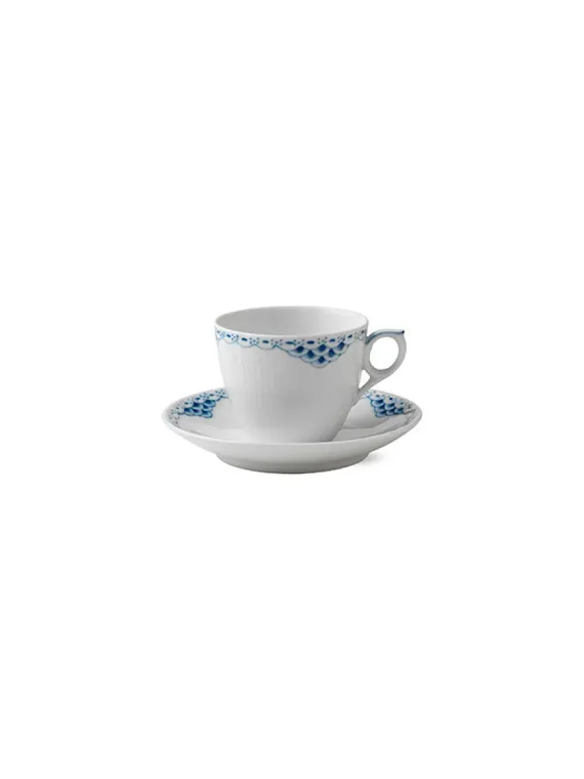 Koppen med underkop fra serien Prinsesse rummer 17 cl og er udsmykket med den smukke blondekant, som er håndmalet af dygtige malere lige siden 1978. Koppen har det gamle smukke hank, som er en smuk detalje det pynter på hvert et kaffebord. Underkoppen er perfekt til servering af en lille småkage, når kaffen eller teen skal serveres.