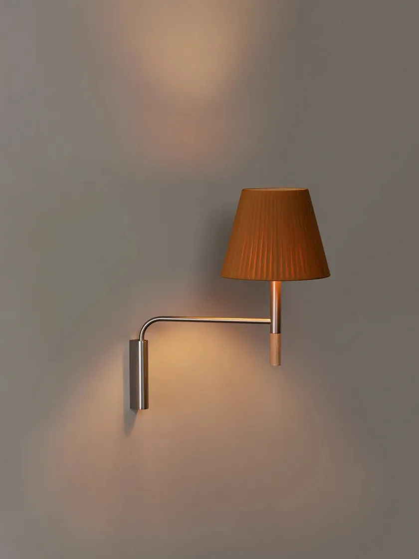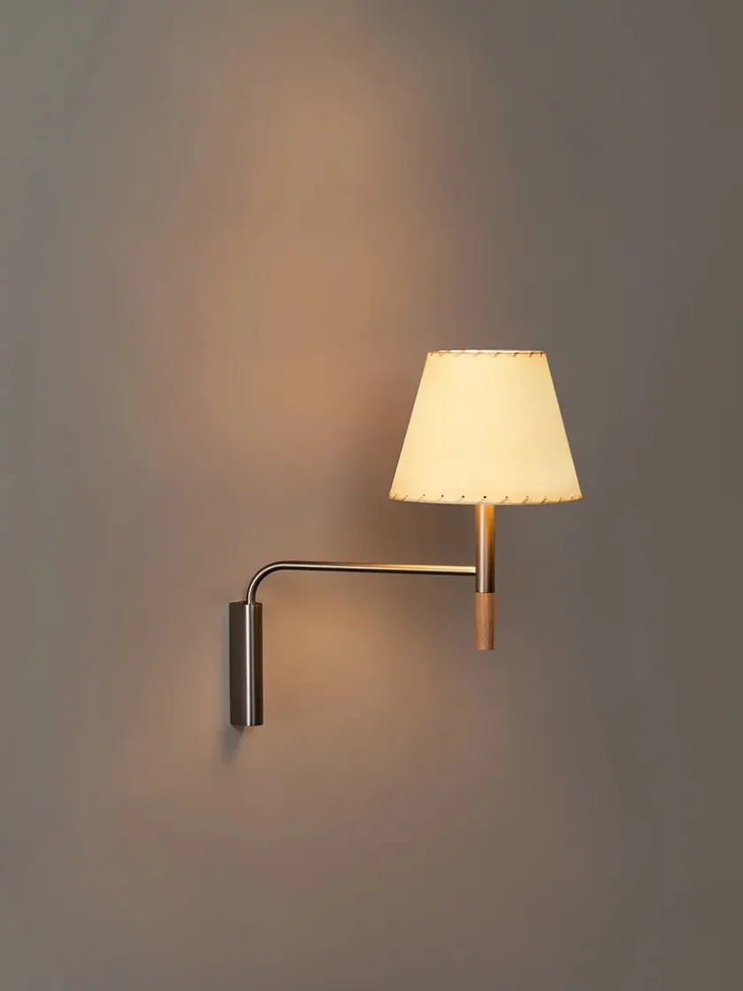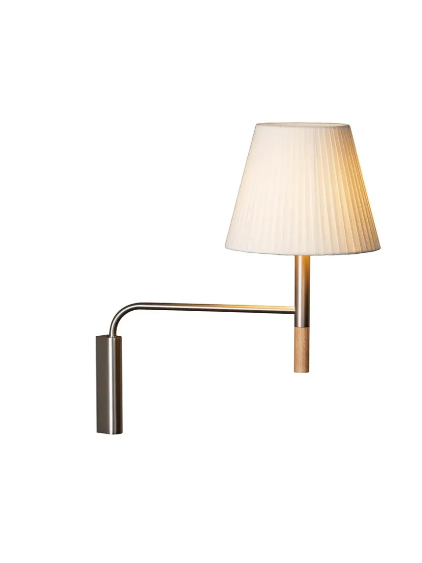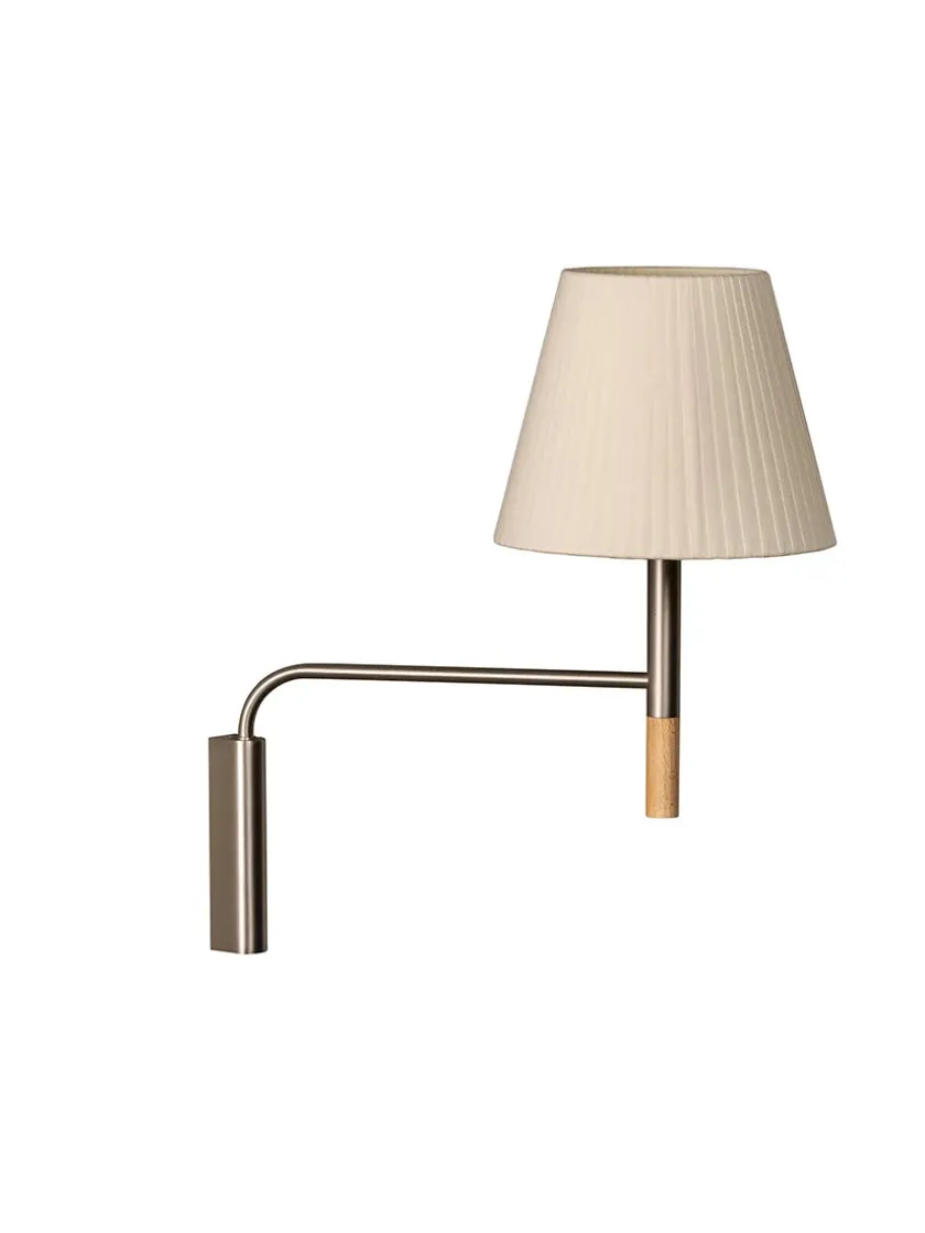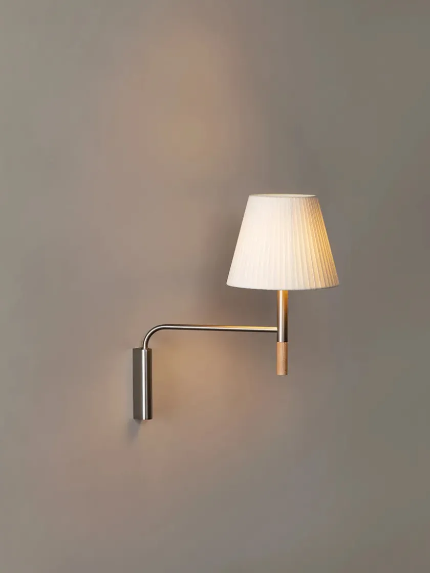 BC væglampen er en klassisk lampe, der har en robust konstruktion og funktionel kvalitet. Væglamperne kan tilpasses behovene i ethvert rum, da lampeskærmene fås i tre stilarter. BC3 har desuden en drejelig arm, hvilket gør den ideel at bruge som sengelampe eller i stuen. Væglampen fås med 7 forskellige lampeskærme, men har alle en detalje af bøgetræ.