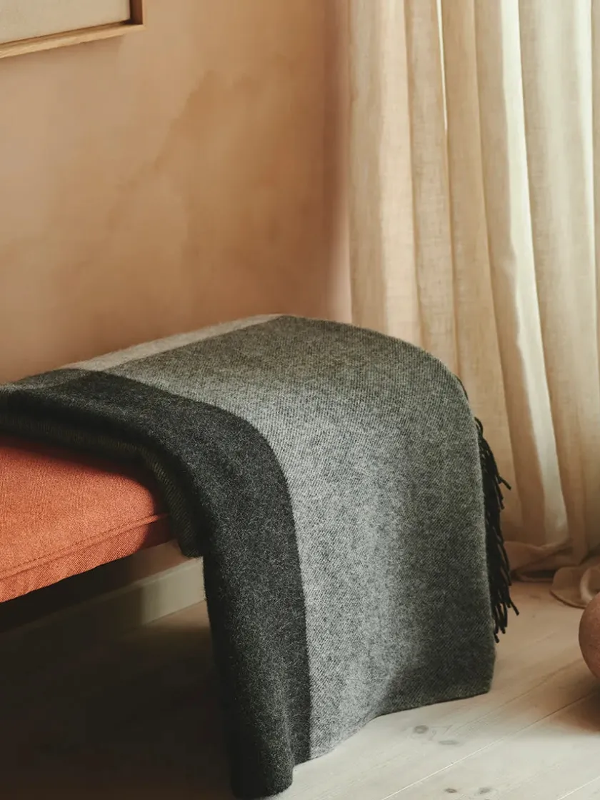 Flot og lækker plaid i 100% uld. Drejø er i et klassisk design, der vil passe ind i enhver indretning med store tern i forskellige nuancer. Ulden er temperaturregulerende, og derfor er tæppet skønt at bruge året rundt. Kvaliteten på Silkeborg Uldspinderis tæpper er høj, og det mærkes tydeligt her. Tæppet her er i et smukt gråt mix.