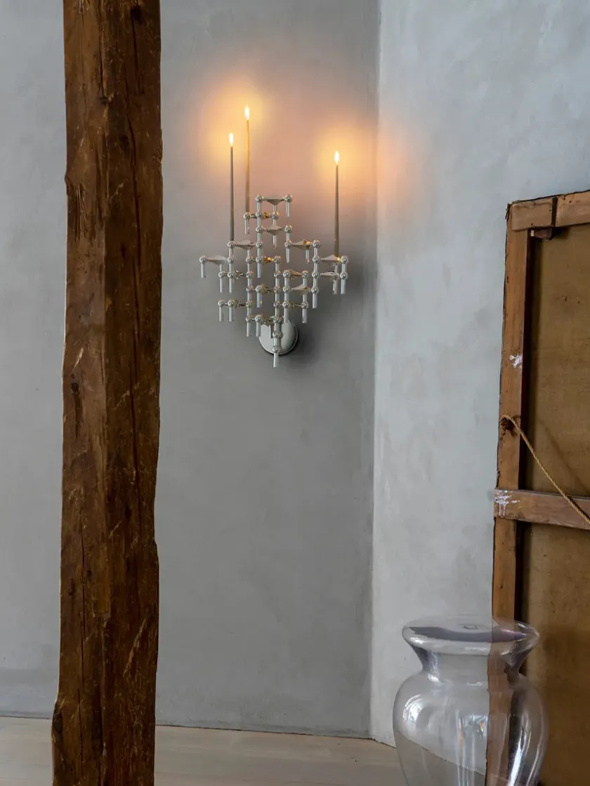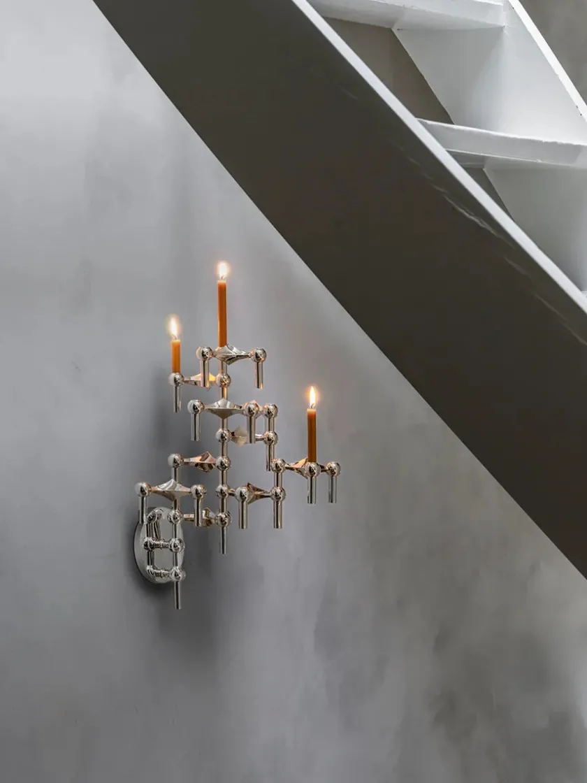 Nu kan du få endnu mere ud af din samling af de populære og smukke lysestager fra STOFF Nagel. Brug dine lysestager i væghængeren og skab en flot skulptur med levende lys. Du kan selv bestemme og justere hvor mange lys, du ønsker.