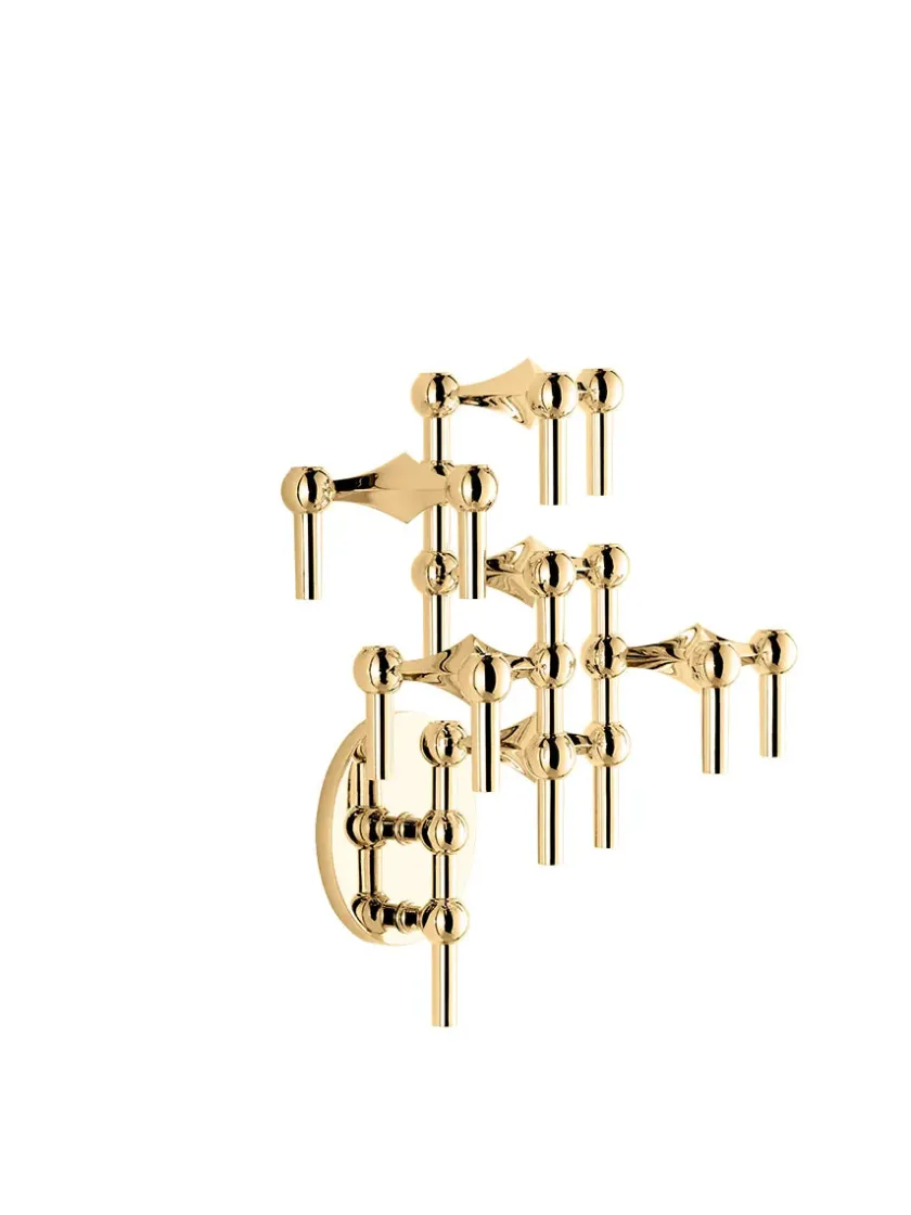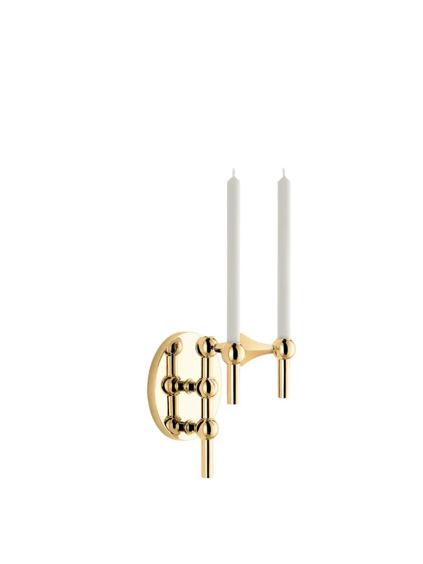 Nu kan du få endnu mere ud af din samling af de populære og smukke lysestager fra STOFF Nagel. Brug dine lysestager i væghængeren og skab en flot skulptur med levende lys. Du kan selv bestemme og justere hvor mange lys, du ønsker. Der medfølger ikke lysestager. Bemærk at vægophænget er i ubehandlet messing og derfor vil patinere.