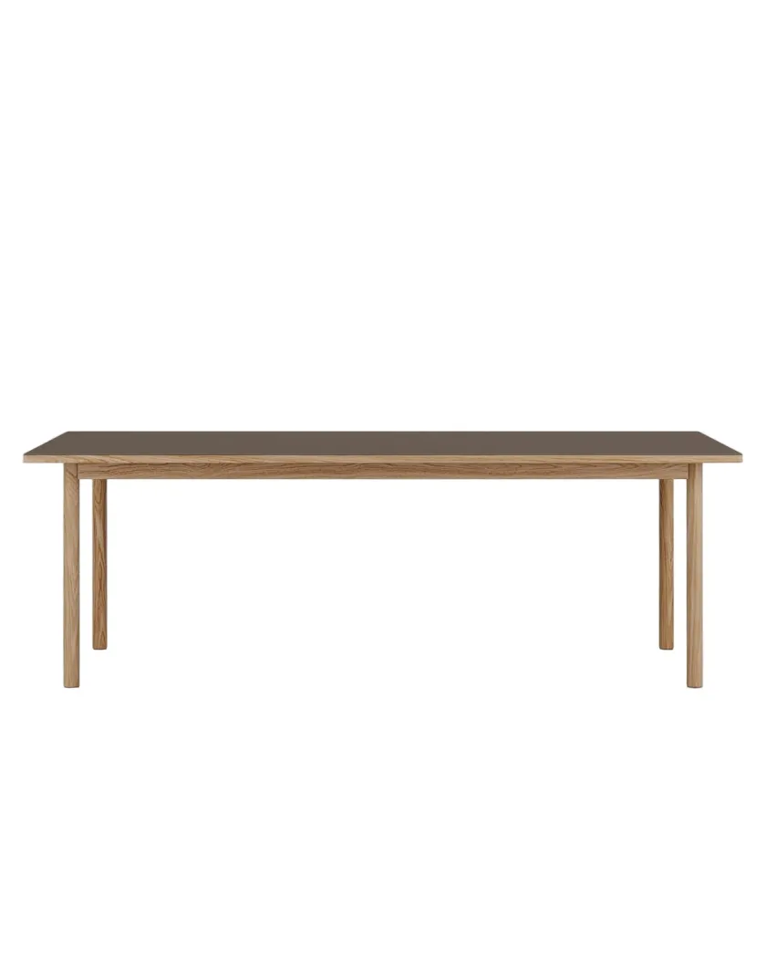 ESSENTIAL OAK Espresso fra Tablelab er et tidløst spisebord hvor varm eg møder en dyb espresso linoleumsoverflade. Den matte taktile top dæmper genskin og føles behagelig i daglig brug mens den lakerede træfinish gør bordet robust og let at vedligeholde. De rene linjer og den solide konstruktion giver et roligt udtryk som er nemt at kombinere med både moderne og klassiske stole. Med de generøse mål er der god plads til alt fra hverdagsmåltider til lange aftener i godt selskab og materialernes kvalitet sikrer et bord der holder sig smukt over tid.