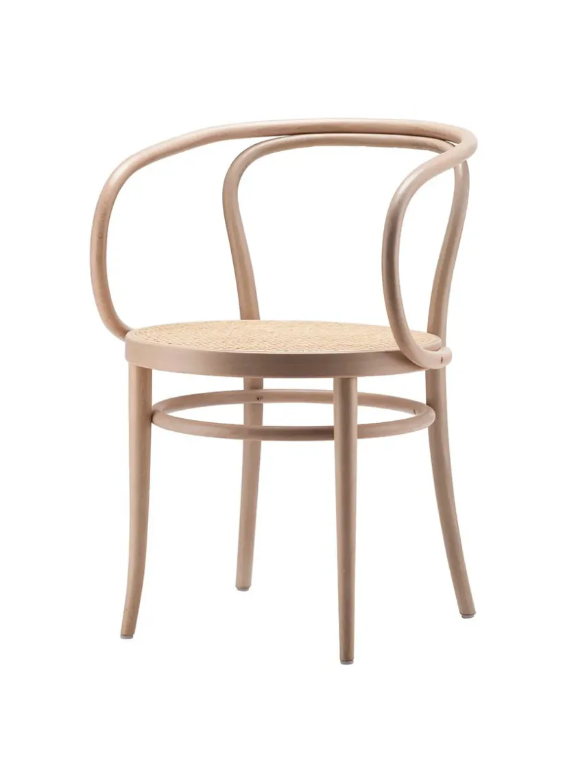 Den formbøjede 209 Thonet træstol er et ægte ikon i møbelverdenen. Stolens ryg er bøjet i et enkelt stykke træ, hvilket gør selve formen og designet unikt og banebrydende, hvis man tager designåret i betragtning.