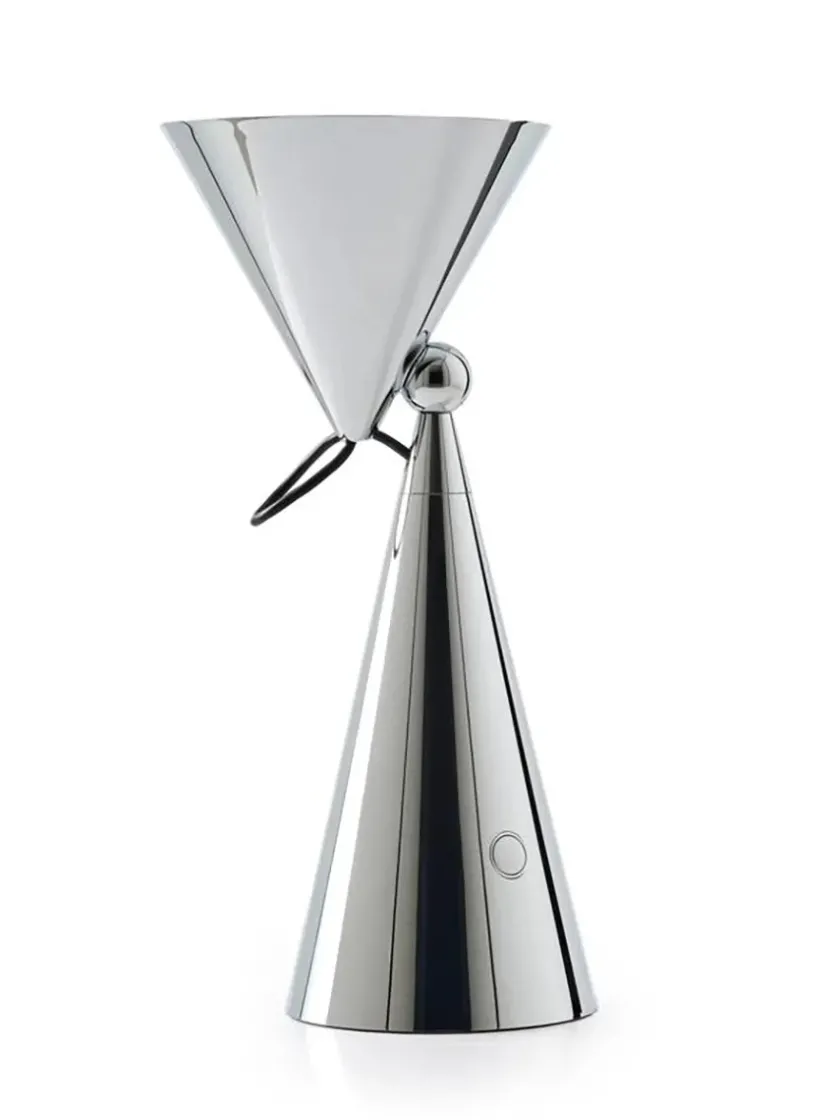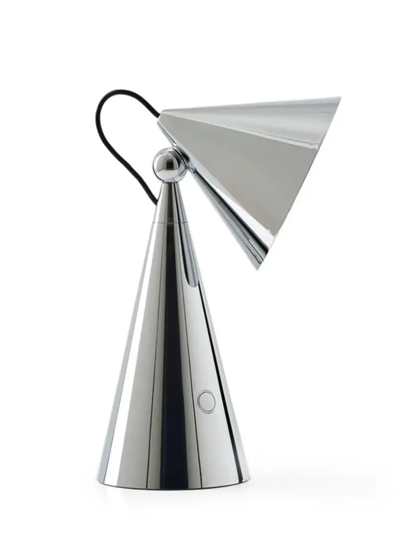 POSE Portable bordlampen er en innovativ og stilfuld lampe, der kombinerer funktionalitet med kunstnerisk design. Inspireret af optisk fysik og brugen af flade linser skaber lampen unikke lysstråler, der reflekterer principperne fra fyrtårne, trafiklys og videnskabelige instrumenter. Dens koniske form og karakteristiske silhuet giver den et skulpturelt udtryk, mens den samtidig tilføjer et strejf af humor og personlighed til enhver indretning. Med en kraftig lysudgang og præcis justerbarhed tilpasser Pose sig nemt til forskellige omgivelser, uanset om den bruges i hjemmet eller professionelle miljøer. Dens minimalistiske, men markante design gør den til et statement-piece, der både er funktionelt og æstetisk tiltalende.