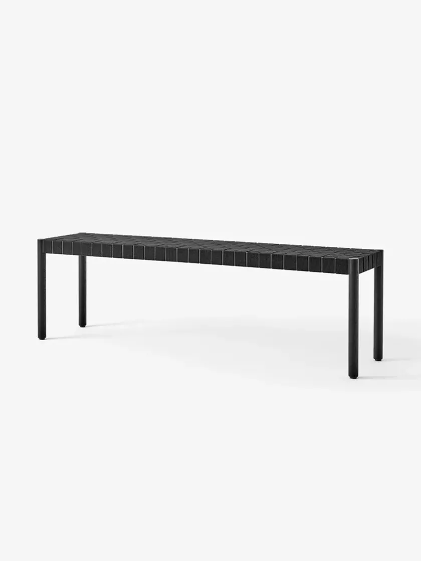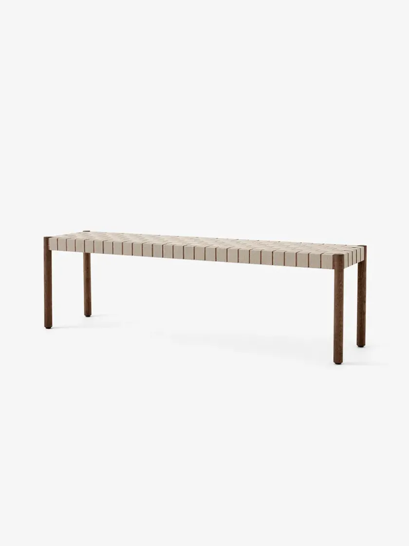 Betty bænk TK4 fra &Tradition er opkaldt efter Betty Nansen-teatret i København og er lavet af bånd, der er håndlavet af naturlige linnedfibre. Rammen er af massiv egetræ og fås i fire moderne kombinationer: sort/natur, tusmørke/natur, rødbrun/natur og sort/sort.