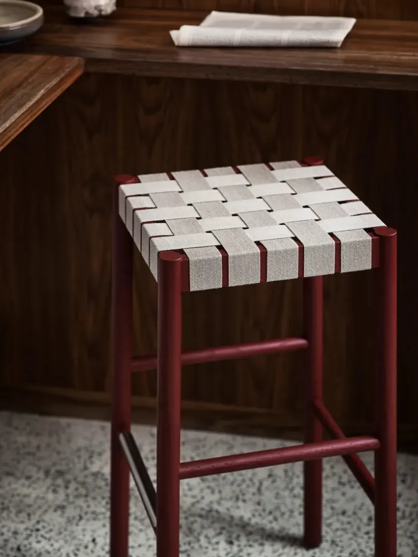 Betty barstol TK8 fra &Tradition er opkaldt efter Betty Nansen-teatret i København og er lavet af lakeret eg. Sædet er lavet af naturlige linnedfibre og vævet i hånden, som giver en blød, polstret base.