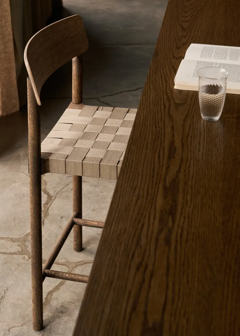 Materiale: Massivt træ, finer, vævet sæde i hør/linen og PP-bånd