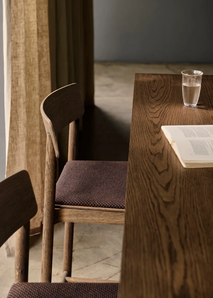 Materiale: FSC®-certificeret massivt træ, formpresset finer, HR-skum og stof/læder