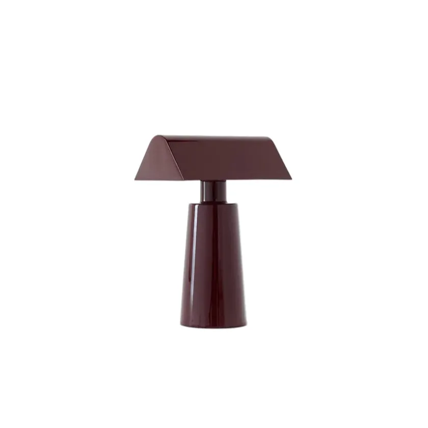 Caret lampen er inspireret af de traditionelle lamper, der findes på offentlige biblioteker. Lampen er fremstillet af lakeret metal, designet har en afrundet base og en lang, pyramideformet top, der udsender et blødt, diffust lys.
