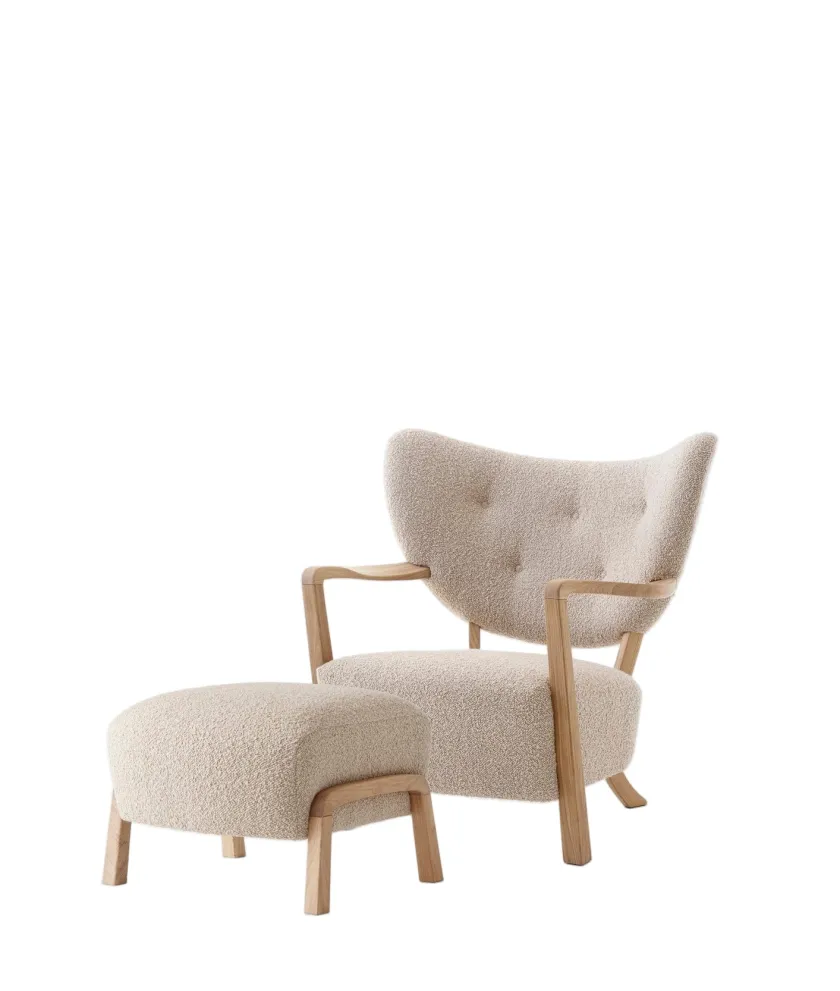Træd ind i en verden af komfort og ikonisk design med Wulff ATD2-ATD3 Karakorum 003 fra &Tradition, et møbelsæt, der byder på både loungestol og puf, skræddersyet til at skabe din nye favoritplads i hjemmet. Det elegante, skulpturelle design med vingeryg og karakterfulde armlæn giver rummet personlighed, mens den frodige polstring i Karakorum 003-stof indbyder til afslapning. Uanset om det er fordybelse med en bog, samtaler over en kop kaffe eller stille øjeblikke alene, bringer dette sæt håndværk, form og komfort i perfekt samspil.