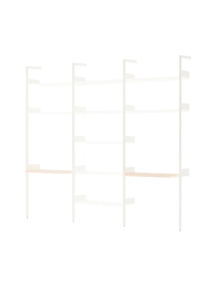 Rombe-serien fås i flere faste konfigurationer og kan udvides med ekstra sektioner og hylder, så systemet let tilpasses rummets funktion og udvikling over tid. Det raffinerede design balancerer æstetik og funktionalitet og skaber visuel ro, samtidig med at det tilbyder gennemtænkt opbevaring og arbejdsplads.