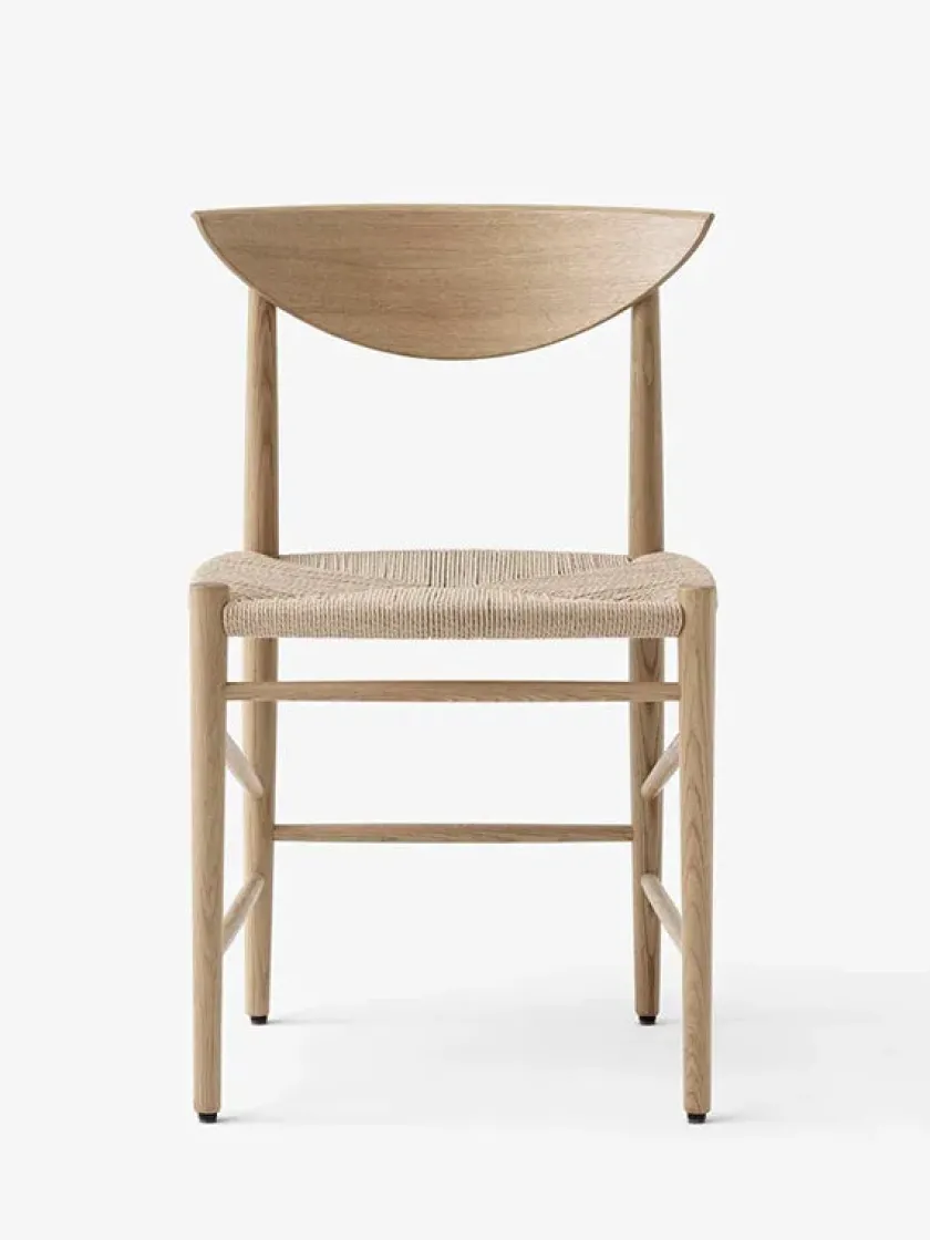 Den ikoniske Drawn HM3 fra &Tradition bringer varme og stoflighed til spiseområdet. Tegnet i 1956 af Hvidt og Mølgaard og genintroduceret med samme respekt for håndværket, forener stolen massivt træ, formpresset ryglæn og et håndvævet sæde i naturpapirledning. De bløde kurver og den lune papirflet giver en indbydende komfort der holder til hverdagsbrug og lange middage. HM3 er den rene spisebordsstol i serien uden armlæn med et let og ærligt udtryk der matcher både moderne og klassiske interiører. Vælg mellem olieret eg, olieret valnød eller sortlakeret eg og tilføj eventuelt den skræddersyede læderpude for ekstra blødhed. Materialerne er nøje udvalgt og udførelsen præcis så stolen patinerer smukt og får karakter over tid.