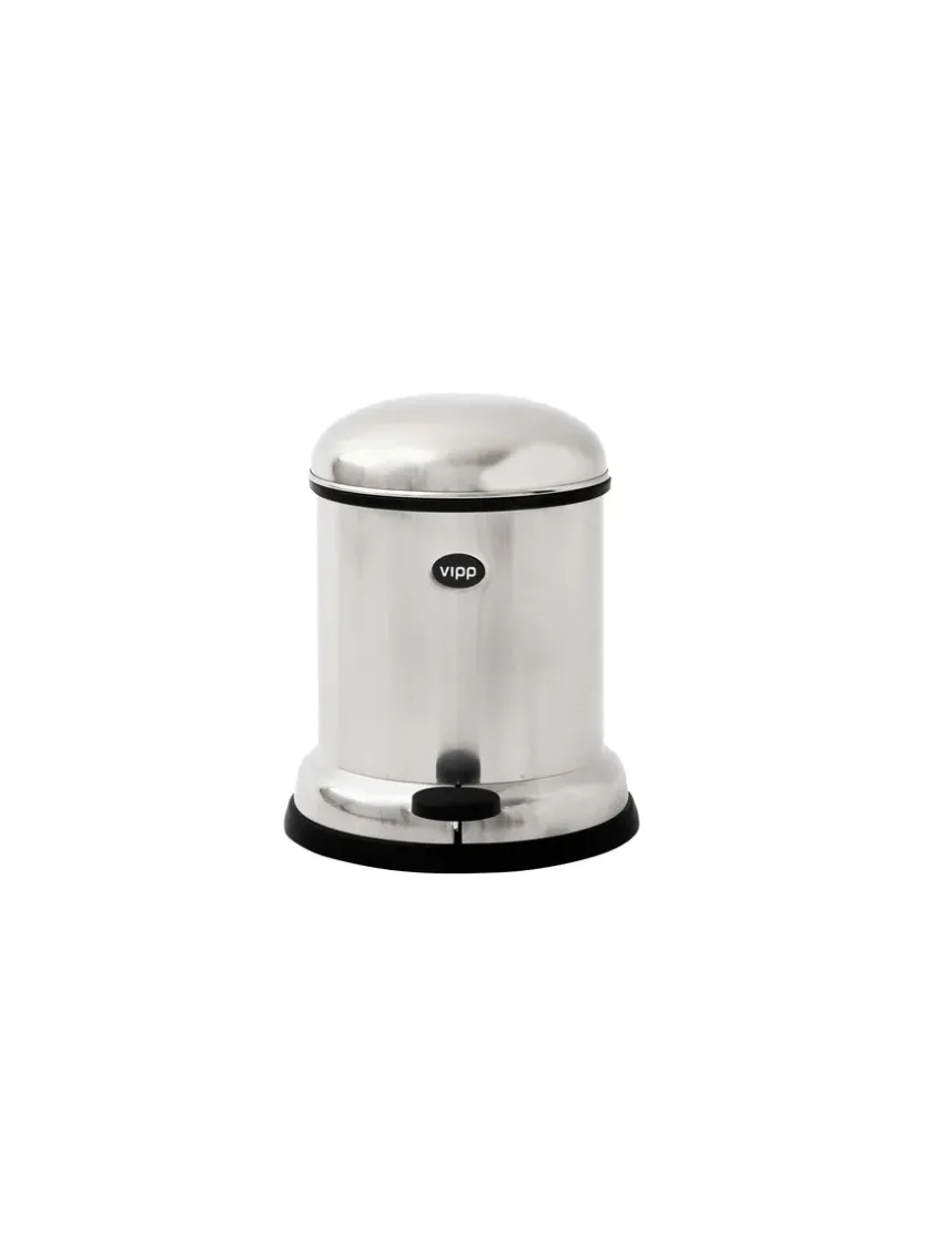 Stainless Steel Collection Nu er de klassiske VIPP spande produceret uden pulverlakering. Det rå, polerede stål tilfører et autentisk look til de smukke og super funktionelle spande. Tilfør tidløse materialer og fantastisk design til dit badeværelse, køkken eller kontor. VIPPs spande er et must i ethvert hjem. Vipp13 pedalspanden er en af de mindre Vipp pedalspande og er ideel til små badeværelser. Denne pedalspand rummer 4 liter og er udstyret med en udtagelig inderspand, et låg der sikrer lufttæt tillukning og en dæmpemekanisme, der lukker spandens låg i en blød bevægelse. En gummiring i bunden beskytter gulvet. Design: Holger Nielsen, 1939 Model: VIPP13 Mål: Ø 24,8 x H 30,2 x D 30 cm (Ø målt ved gulvet). Materiale: Rustfrit stål, silikone Volume: 4 liter