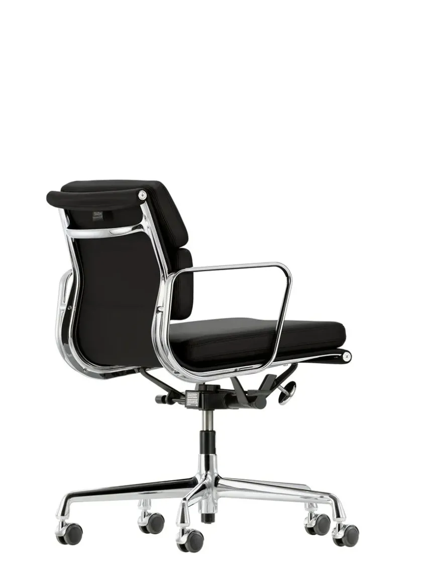 EA 217 forener Eames parrets tidløse formsprog med fornem komfort, så din arbejdsplads føles lige så indbydende som den ser ud. I cognacfarvet læder står de bløde, påsyede puder i elegant kontrast til det slanke stel i krom, mens vippefunktion med vægtjustering og trinløs højde giver aktiv støtte hele dagen. Resultatet er en ikonisk Vitra kontorstol, der løfter både hjemmekontor og professionelle miljøer med raffineret ro, præcision og materialer i særklasse.
