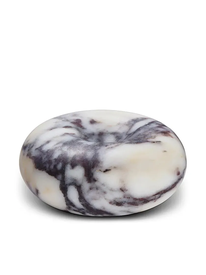 Cosmos er halvt brugsgenstand, halvt kunstobjekt. Det lille kugleformede objekt har en lille fordybning som gør, at der kan lægges noget i eller på det. Cosmos er udformet i den smukke marmor, calacatta violetta, som er med store aftegninger og meget unik. Cosmos fås i to forskellige størrelser, og de er flotte at bruge sammen. Den store her kan eksempelvis bruges med frugt eller som skulptur.