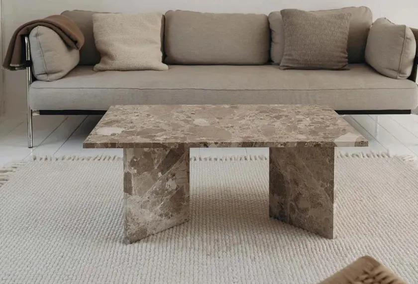 Konkylie er et smukt sofabord i upcyclet natursten. Naturstenen er skærspild fra produktion, der normalt ville blive kasseret. Naturstenen hedder Marrone, og er med smukke gråbrune og sandfarvede aftegninger. Konkylie sofabordet passer ind i alle hjem og stuer og er nemt at style. Konkylie sofabordet hed tidligere Birk, men har nu skiftet navn. Da sofabordet er af marmor, som er en naursten, vil hvert enkelte bord være unikt.